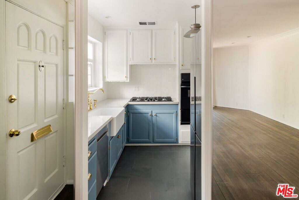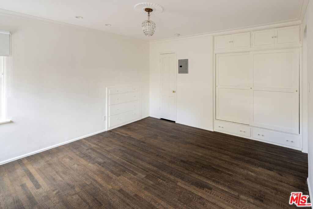 West Hollywood Gem :: In the coveted Cory Apartments :: Private Garden - 1 BD / 1 BA - 860 Sq Ft. Charming one-bedroom retreat in prime West Hollywood with gated private entrance through a beautiful brick walkway. Sun-drenched living room with dark hardwood floors and large sliding glass door opening to your own private fenced garden. Kitchen features quartz countertops, slate floors, farm sink with brass hardware, stainless steel appliances, and a garbage disposal. Renovated bathroom with original vintage tile, large soaking tub, and glass shower door. Thoughtful details include original crystal chandeliers, recessed lighting, blackout shades, and abundant built-in storage. In-unit washer/dryer, mini-split A/C and heating, one carport space, Ring doorbell, and on-site manager. Steps from Soho House, Boa, and the flats of Beverly Hills. MLS# 26670429