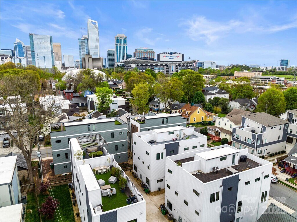 Meticulously maintained and perfectly situated in the heart of Charlotte’s Third Ward,this three-story townhome blends modern design with upscale finishes and an unbeatable location. Just one block from Frazier Park and the Irwin Creek Greenway,and minutes from Uptown,this residence offers a seamless balance of urban convenience and natural beauty. Inside,discover hardwood flooring throughout and a refined open-concept main level designed for effortless entertaining. The kitchen showcases professional Wolf and KitchenAid appliances,custom cabinetry,quartz countertops,a tiled backsplash,and a large island with seating—flowing naturally into the light-filled living room. Upstairs,the primary suite features a large walk-in closet with custom shelving and an elegant spa bath complete with dual vanities and a glass-enclosed shower with dual showerheads. The second guest bedroom includes a full ensuite bathroom and ample closet space,while the conveniently located laundry completes the upper level. The lower level offers an additional bedroom or flexible home office space with a full bathroom and additional storage. A highlight of this home is the expansive rooftop terrace offering stunning views,ideal for gatherings or quiet evenings. With easy access to I-77,the Panthers and Knights stadiums,and all of Charlotte’s vibrant Uptown amenities,this home delivers the best of modern city living.