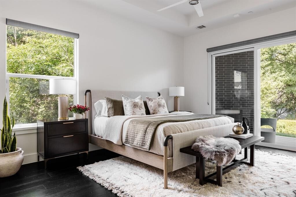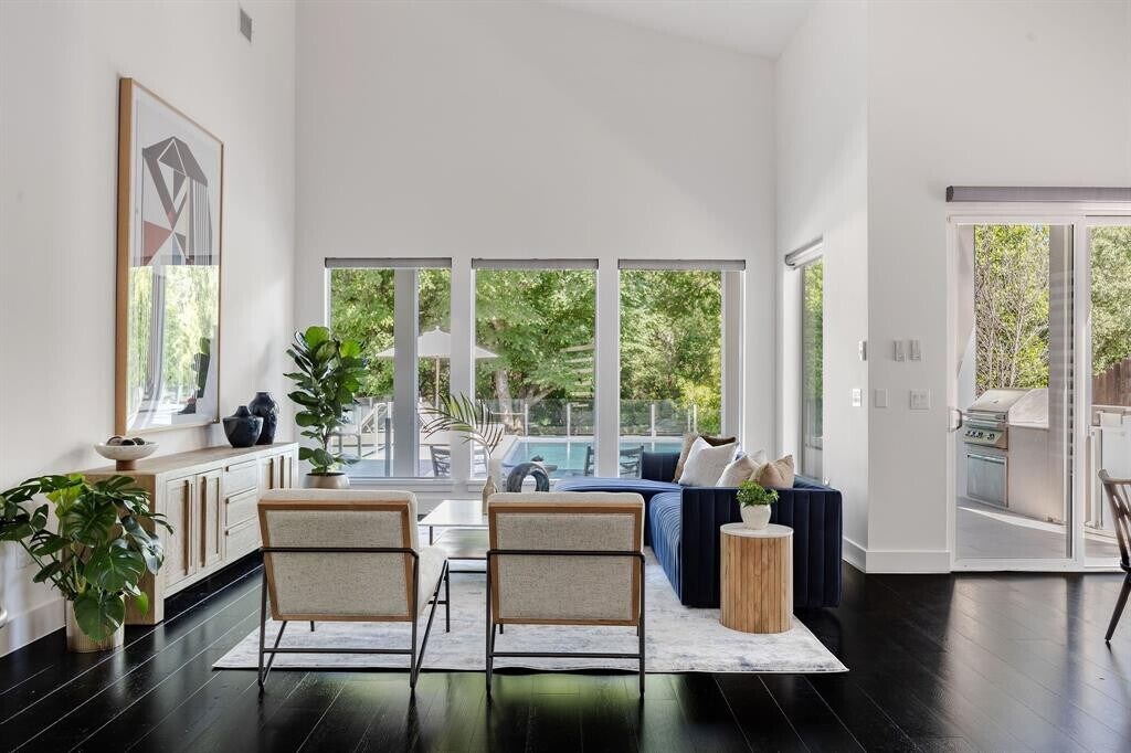 This 5 bed/5.5 baths contemporary home offers transitional style, a flexible floor plan, and a backyard oasis. With more than 4,000 SF on a third of an acre, this home delivers space for everyday living and entertaining. Shaded by mature trees, the beautiful and private backyard will surely be your favorite spot for enjoying all four seasons. Relax around the fireplace in your outdoor living room while entertaining around the swimming pool. This multi-level backyard also has a lawn/play area for kids. Hardwood floors, abundant glass, and soaring ceilings complement the open layout, including five flex/living spaces perfect for how your modern family lives. Anchoring the heart of the main level is a sleek chef’s kitchen with a large island, designer appliances, and a serving pantry that adjoins the dining room. You won’t find a more tranquil or private location. Situated between Mopac and Exposition, this neighborhood offers a laid-back, family-friendly vibe and enviable proximity to everything Austin offers, including excellent public and private schools. Walk to Muny Golf Course and the Hike and Bike Trail at Lake Bird Lake. Downtown is only minutes away. MLS ID 2636895