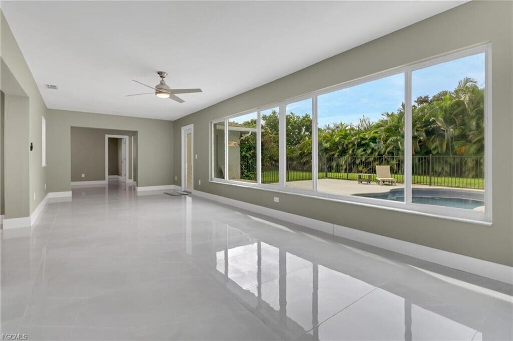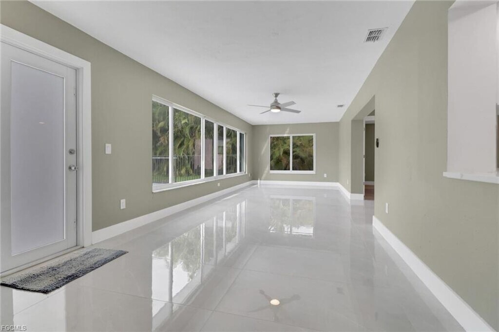 Elegant 3-Bedroom Pool Home in the Prestigious 8 Lakes Area of SW Cape Coral! Experience modern elegance and resort-style living in this beautifully renovated 3-bedroom, 2-bathroom pool home, perfectly situated in one of Cape Coral’s most desirable neighborhoods — the 8 Lakes Area. Step inside to discover 24x48 porcelain tile flooring throughout, impact-resistant windows and doors, and a bright, open floor plan that blends luxury and comfort. The gourmet kitchen is a true showpiece, featuring white shaker cabinets, quartz countertops, stainless steel appliances, and plenty of space for both cooking and entertaining. The spacious primary suite offers a large walk-in closet and a spa-inspired bathroom, creating the perfect private retreat. Two additional bedrooms share a beautifully updated bathroom with direct access to the pool — ideal for guests or family. Step outside to your private backyard oasis, complete with a sparkling pool featuring a sun shelf, a spacious concrete deck, and lush tropical landscaping that provides both beauty and privacy. With rear southern exposure, you’ll enjoy sunshine all day long — perfect for lounging or hosting gatherings. Located just minutes from Cape Harbour, Tarpon Point Marina, downtown Cape Coral, and with quick access to Fort Myers, this home combines luxury living with unbeatable convenience. City water and sewer are already in place. Don’t miss this opportunity to live in one of Cape Coral’s most sought-after areas — schedule your private tour today!