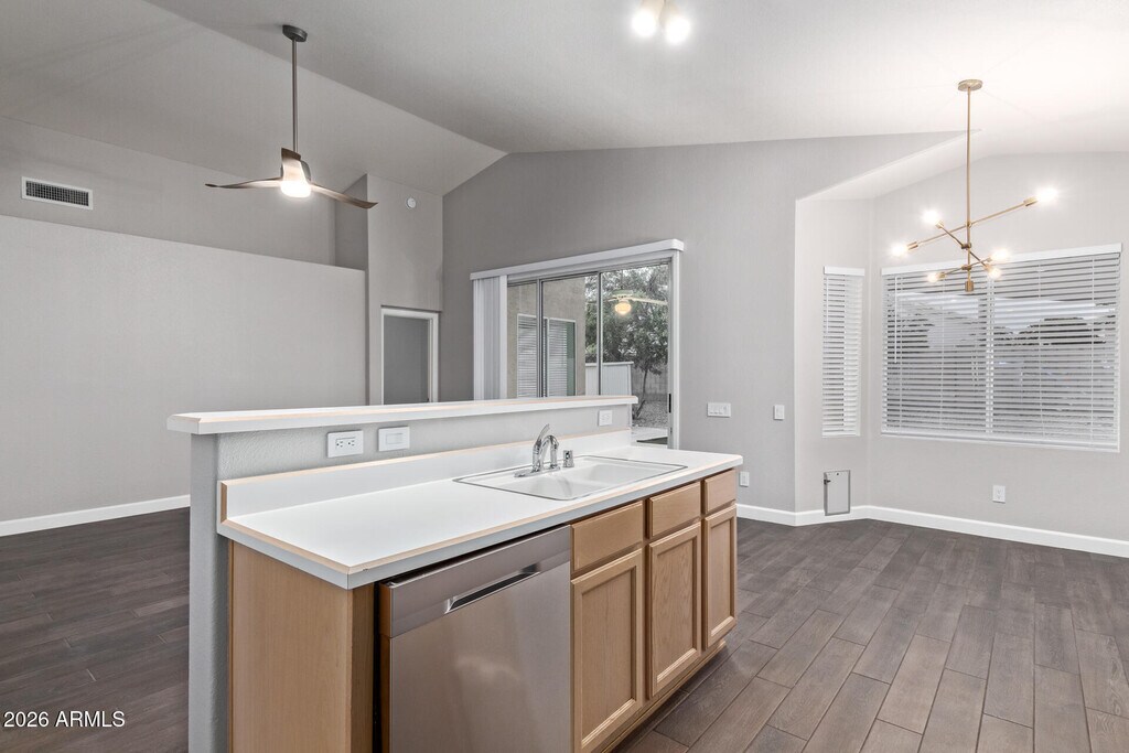 Now available for lease in the Moonlight Cove communitythis well-maintained 3-bed,2-bath home features a 2-car garage and a landscaped front yard. Inside,enjoy wood-look tile flooring,vaulted ceilings,a modern color palette,and upgraded ceiling fans and lighting. The open great room includes sliding doors that lead to the covered patio. The remodeled kitchen offers ample cabinetry,a pantry,built-in appliances,a two-tier island,and a bay-window dining area. The primary suite includes dual sinks,a separate tub and shower,and a walk-in closet. The large backyard features a covered patio and storage shed.