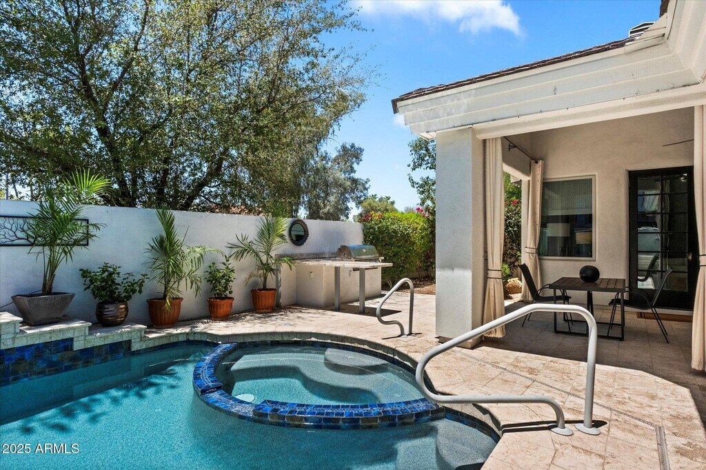RENTED THROUGH APRIL 2027** Exceptional home in Guard Gated Gainey Ranch in center of Scottsdale! This fully furnished,single-level split floor plan features a spacious primary suite with a large primary bath,huge walk-in closet,and attached private office. Each of the 3 additional spacious bedrooms features it's own beautifully brand newly remodeled bathroom. The chef's kitchen includes a large island,Wolf gas cooktop,double ovens,and Sub-Zero refrigerator. There is an oversized laundry with excellent storage. The gorgeous backyard is ideal for entertaining with a pool and spa,covered patio,misters,built-in BBQ,and separate pool bath. Included is full access to Gainey Ranch Estate Club amenities,including a fitness center,lap pool,tennis,pickleball and more!