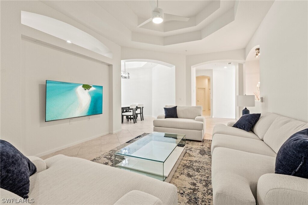 ANNUAL RENTAL AVAILABLE MAY 1st,2026 FOR $4,400/MONTH (RENTED FOR JAN-APRIL 2026)! AVAILABLE FOR SEASON 2027 @ $10,000/MONTH. Welcome to your dream retreat at Miromar Lakes Beach and Golf Club! This stunning property offers a spacious layout with 3 bedrooms plus a den,2 full bathrooms,and a half bathroom. The den,turned office,is a wonderful,organized and comfortable space for you to work from home and has a pull out couch to add more sleeping space when needed for special guests! Other key features include 2 garage spaces,built-in cabinets,tray ceilings,a security system,and a beautiful spacious screened-in balcony perfect for relaxation and entertaining. The main highlight of this condo is being BEHIND THE MAIN GATES and LESS THAN A MILE FROM THE CLUBHOUSE/RESORT AMENITIES. Miromar Lakes provides an unparalleled luxurious lifestyle with an extensive array of amenities designed to cater to your every need. Enjoy the pristine and elegant Beach Club,lakefront beach,Blue Water Beach Grill,zero-edge infinity pool and spa,marina with boat rentals included (also great for enjoying an array of water sports!),wellness spa,and stay active at the state-of-the-art fitness center and tennis and pickle ball courts. Make sure to indulge in fine dining at the on-site restaurant,as well. Living in Miromar Lakes means enjoying luxurious living with everything you need right at your doorstep. This is an incredible opportunity to experience the best of what Miromar Lakes has to offer. Welcome home! ***NOTE: Since these pictures were taken,decor and wall art has been added,more patio furniture has been added to the lanai,and more!