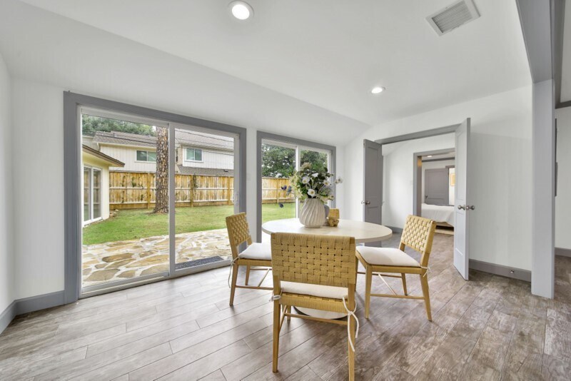 FULLY UPDATED breathtaking Midcentry/Modern one-story 3-bedroom,2.5-bath home in highly desirable Briargrove Park! Thoughtfully Re-designed,RENOVATIONS for functionality,comfort. Home features an open floor-plan,fresh paint and HIGH-END wood-look tile flooring thr-out. Formal dining. Home office W/double doors can easily be used as a 4th bdrm. Elegant details include crown molding,recessed lighting,custom cabinetry and countertops W/abundant built-in storage. Spacious kitchen features custom cabinets,quartz countertops,and high-end S.S. appliances. Fridge,washer and dryer are INCLUDED! Primary suite offers his-and-her oversized walk-in closets W/extensive built-ins. Spa-like primary bath includes a soaking tub and extended walk-in shower. Oversized utility room is equipped W/S.S. sink,quartz countertops,and PLENTIFUL built-in cabinets. Additional upgrades include circular driveway,new ductwork,200-amp electrical panel,tankless water heater and many more... NEVER FLOODED! MLS# 22592384