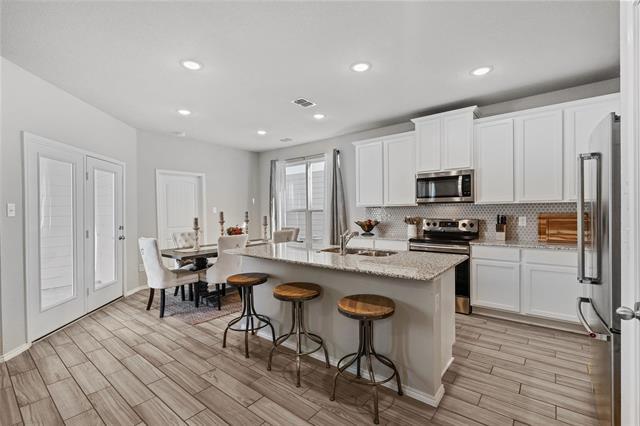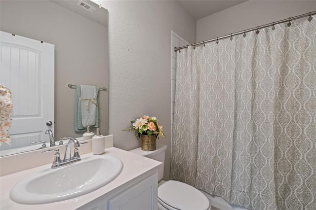this 4 bed, 3 full bath home in the quaint town of Providence Village! This two-story gem boasts an open-concept living, kitchen, & eat-in dining room with wood look ceramic tile. Downstairs is a spacious study & a secondary bedroom with full bath perfect for guests. The kitchen has SS appliances, walk-in pantry, breakfast bar & granite c-tops. Upstairs are two additional bedrooms, a full bath with dual sinks, game room as well as private master bedroom & bathroom. Master has dual sinks, garden tub, separate shower and walk-in closet with a CUSTOM CALIFORNIA CLOSET design. Amazing community & events!