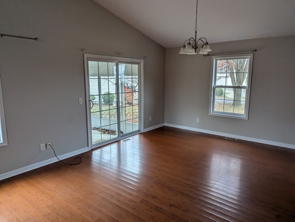 Free Application: Apply online at then call to schedule a showing M-F 9a-4p at . Property Highlights: 3 Bedroom 2 bath home on cul-de-sac with large beautiful yard. Screened porch. Open floorplan with vaulted ceilings. Large family room with fireplace. Hardwood flooring and separate laundry room. Utilities & Trash: Tenant pays all utilities, Sewer billed back at $40 month Yard/Snow care: Tenant responsible for all yard care and snow removal Pet Policy: Pets require approval. $250 nonrefundable deposit, and monthly fee $25/month. Vaccination records and regular lawn clean up required. Additional Requirements: Renters Insurance Required. Deposit-Free Renting: Offered through Obligo. Learn more at Credit scores lower than 630 require double deposit.
