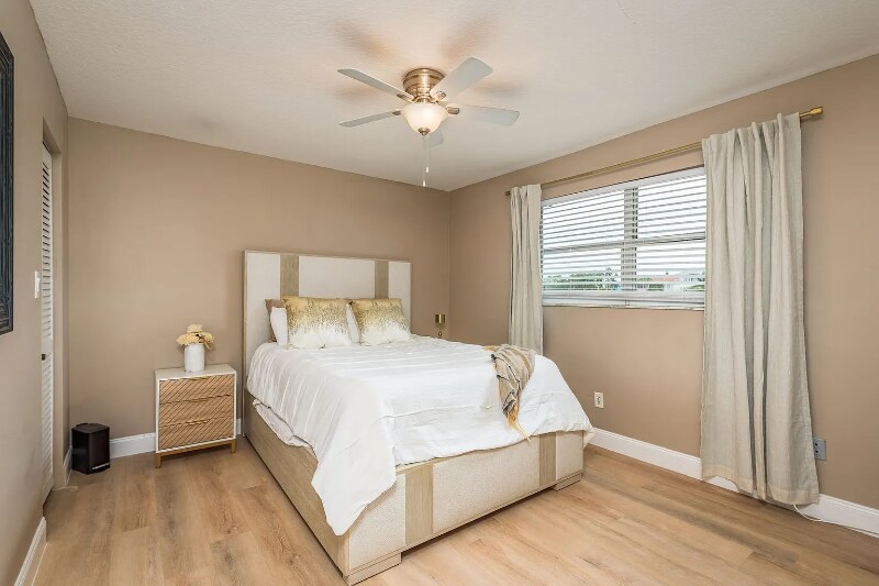 Property Id: 2229509 Welcome to your move in ready retreat in beautiful Safety Harbor, FL! This furnished and tastefully updated 1-bedroom, 1-bathroom condo offers bright and stylish living space, nestled in a quiet waterfront community that combines comfort, and coastal charm. Located on the second floor at the best part of the community for added privacy, features a screened front patio with water views and a private back patio, both with cozy seating, perfect for morning coffee or evening unwinding. Inside, you'll find modern furnishings, luxury vinyl plank flooring, and plenty of natural light. The spacious living area includes a sectional sofa, Smart TV, and a built-in desk, ideal for remote work. The bedroom has a comfy queen bed, blackout curtains, a walk-in closet, dresser, and nightstands. The bathroom includes matte-black fixtures, tub shower, and fresh linens. An in-unit stacked washer and dryer with a convenient folding station adds to the comfort and functionality. Utilities Included!