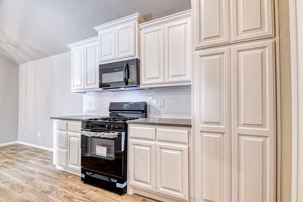 A beautiful three bedroom, two bathroom home with a two car garage in charming Kings Manor Addition! This home is move in ready and features wood look tile through the living and kitchen, neutral color scheme, lots of natural light, fully fenced backyard. The home overlooks Little River Park! Tenant pays gas, water and electric and is responsible for all lawn care. Plaza Towers Elementary, Highland West Junior High and Southmoore High School.