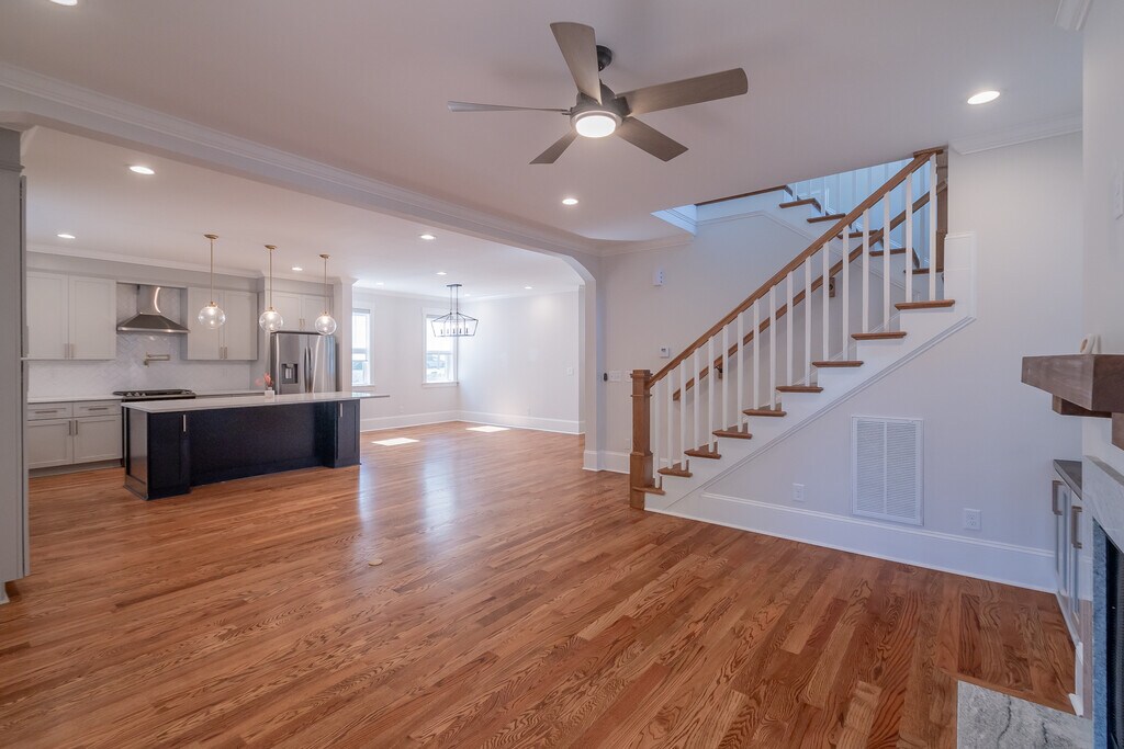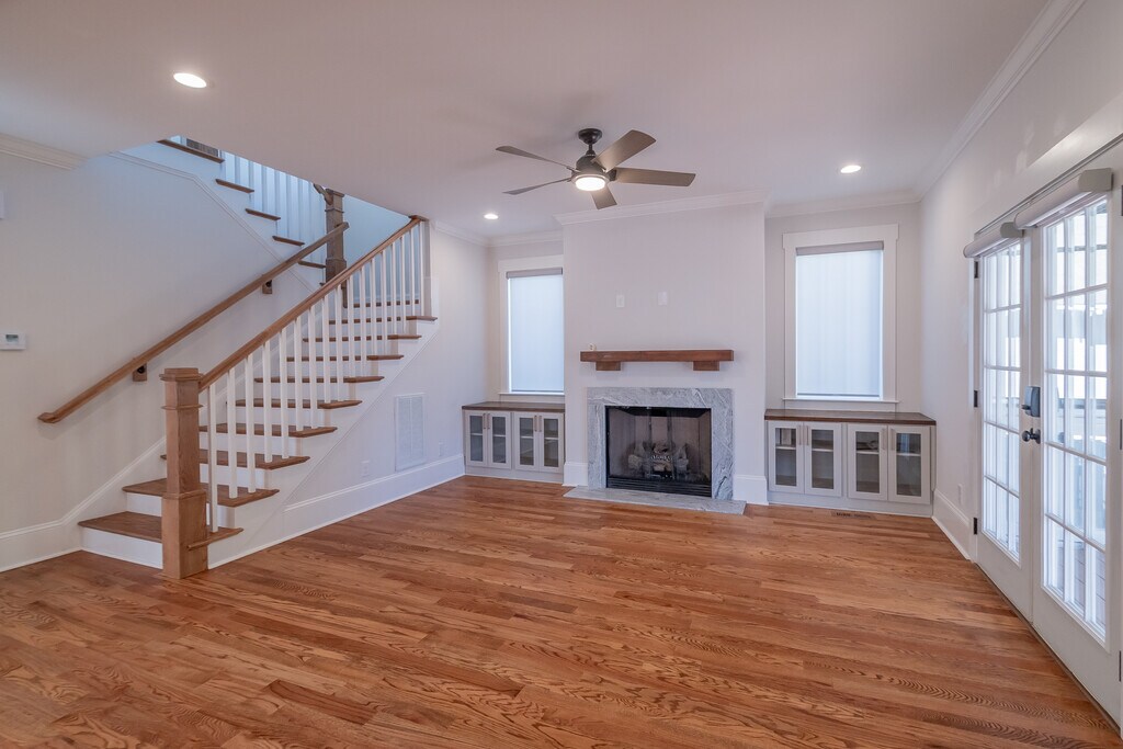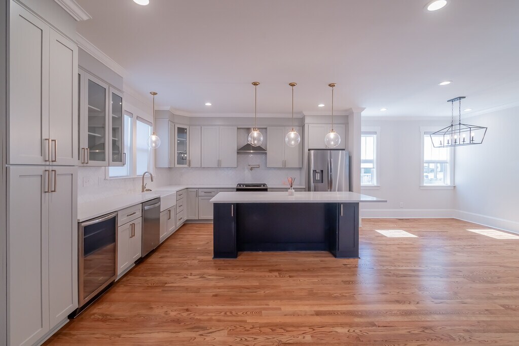 Experience modern living at its finest in this stunning 4-bedroom, 2.5-bath home located in the heart of Enderly Park, one of West Charlotte's most vibrant and fastest-growing neighborhoods. This newer construction offers a seamless open-concept layout highlighted by beautiful hardwood floors and elegant plantation shutters throughout, providing a perfect balance of sophisticated style and everyday comfort. The main level is designed for both relaxation and entertaining, featuring a bright living area with a gas fireplace and custom built-ins. The large, chef-inspired kitchen is a true centerpiece, boasting an oversized island, ample storage, a premium gas range with a convenient pot filler, a built-in wine and beverage fridge, and a sleek in-cabinet mounting microwave. A versatile fourth bedroom on this level serves perfectly as a dedicated home office, while a convenient half bathroom is ideally situated for guests. The upper level serves as a private retreat, anchored by a spacious primary suite complete with a generous walk-in closet and a luxurious en-suite bathroom featuring a double vanity and a large soaking tub. Two additional well-sized bedrooms share a full bathroom, and the convenience of a dedicated second-floor laundry room—located right next to the master bedroom—makes daily chores a breeze. Every corner of this interior reflects a commitment to quality and modern convenience, creating an inviting atmosphere that feels like home the moment you walk through the door. The outdoor living spaces are truly exceptional, offering rare city luxuries including a charming front porch with a ceiling fan and a massive 16x16 screened-in back porch with EZ-Breeze windows. The fully fenced backyard is an entertainer's dream, featuring a fire pit and a paver grilling area, providing a private sanctuary for pets and guests alike. Parking and storage are never an issue with a finished detached two-car garage equipped with built-in shelving, plus a long driveway that can accommodate up to four additional vehicles. The location is truly unbeatable, offering a prime walkable lifestyle just steps from the Stewart Creek Greenway for easy walking or biking to local parks and football games. You are minutes away from an incredible array of Charlotte's favorite local spots, including Enderly Coffee, Platform Coffee, The Batchmaker, Pizza Baby, Restaurant Constance, Lucky Dog Bark & Brew, Not Just Coffee, and Azul Tacos, with many more shops and eateries nearby. This home offers the best of urban living with the rare benefit of significant private outdoor space. Pets are welcome, and the home is strictly non-smoking. Tenants are responsible for utilities and landscaping. Reach out to schedule your showing today and see this beautiful home for yourself!