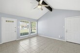 Charming two bedroom two bath duplex with hard surface flooring throughout. High ceilings in the living room and plenty of natural light. One car garage.