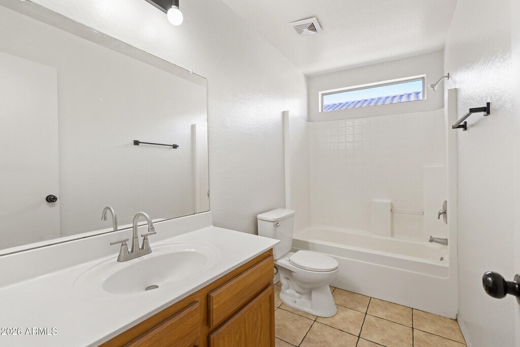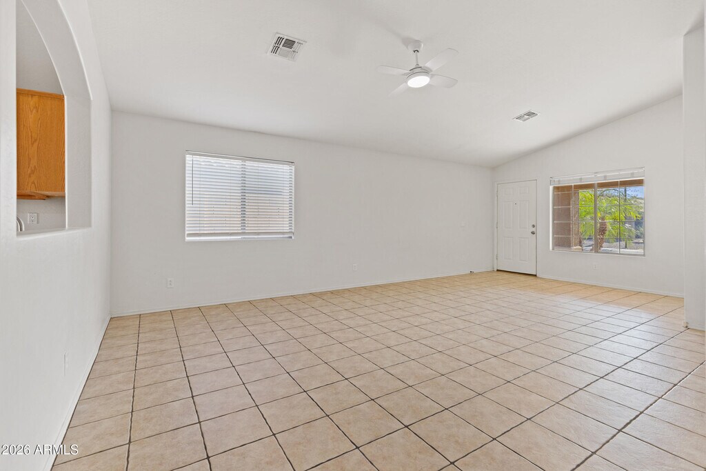 This single-family home offers 3 bedrooms and 2 bathrooms across 1,370 square feet of comfortable living space. Located in the desirable Parkwood Ranch community and built in 2003,the home features a spacious eat-in kitchen,vaulted ceilings,and tile flooring throughout the main living areas. The property sits on a 5,933 sq. ft. lot and includes a fenced backyard and a two-car garage. Additional amenities include central air conditioning,ceiling fans,and washer hookups for added convenience. Pets are welcome. Conveniently located near Mendoza Elementary and Skyline High School within the Mesa Unified School District,this home is ideal for those seeking a comfortable suburban lifestyle.
