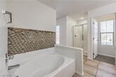 This charming two-story property includes 4 bedrooms and 2.5 bathrooms. The property has been freshly painted with neutral tone paint throughout with tile and manmade wood flooring. The spacious kitchen has granite countertops with an island, breakfast bar, and pantry. The upstairs owner's suite includes dual sinks, separate tub and shower, and manmade wood flooring. Laundry room located upstairs for convenience. Backyard landscaping is low maintenance and has a covered patio!