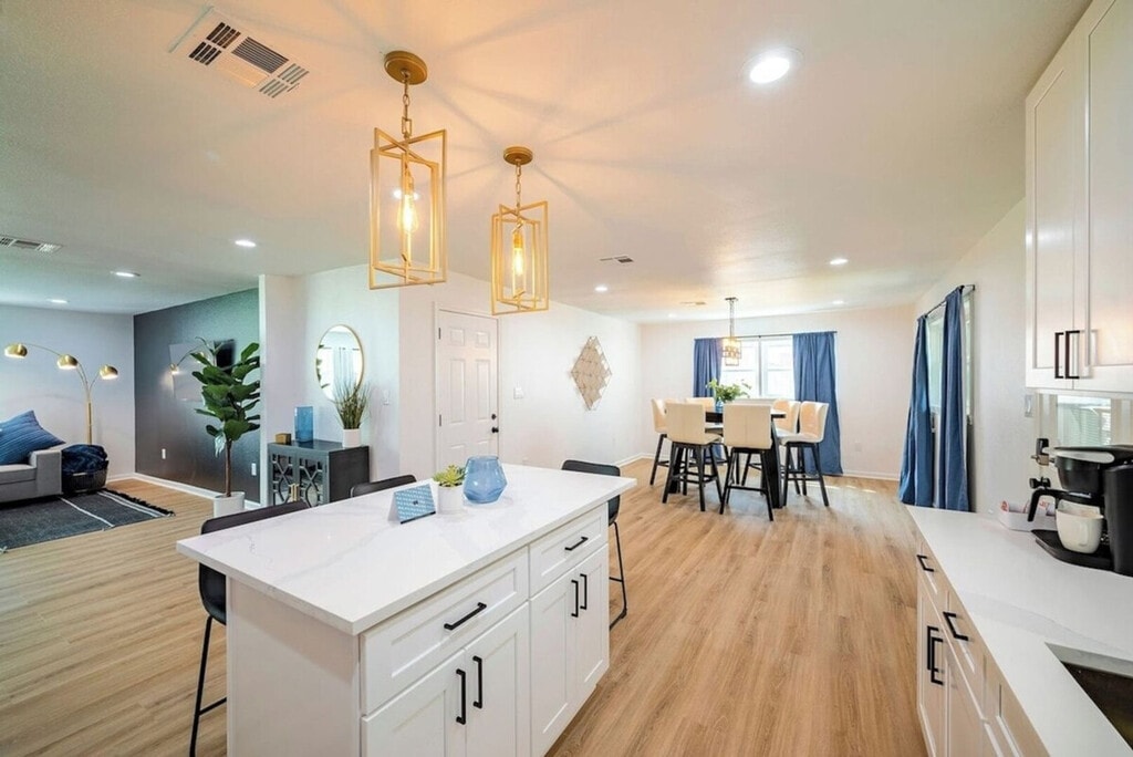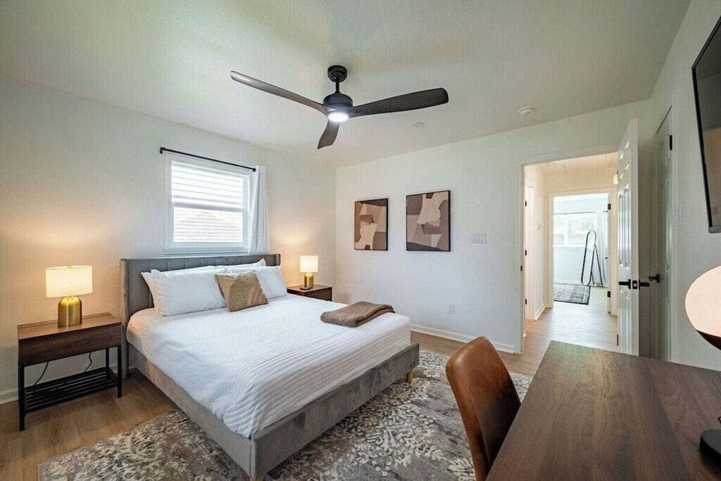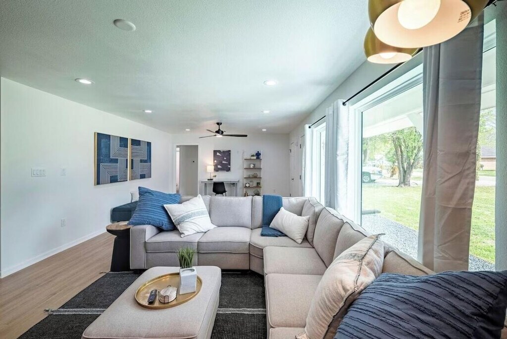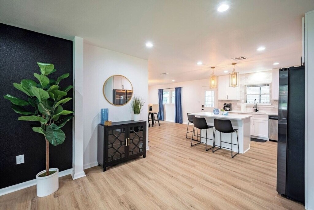 Welcome home to this modern and cozy space, perfect for families, groups, couples, and everyone in-between. The entire house has been updated with new appliances, furniture, and amenities to ensure a comfortable stay. You'll love the open concept living area, sprawling kitchen, stylish bedrooms, and the fenced backyard. Ideal for exploring all that Houston has to offer, with easy access to nearby restaurants, shopping, and attractions. As you step inside, you will be greeted by a spacious and bright living room with plenty of seating for everyone to relax and unwind after a long day of exploring the city. Utilize the open concept office/work area that is complete with a height adjustable desk. The entry area flows seamlessly to the living room with two huge windows. The modern and fully equipped kitchen features brand new stainless steel appliances and everything you need to cook up a delicious meal for your loved ones. Seating options are available at the kitchen island or in the dining room to accommodate everyone when it’s meal time. Or enjoy the beautiful southern Texas weather in the private fenced backyard complete with gas grill, seating, and plenty of green space for everyone to enjoy. Parking is no issue as you're more than welcome to use the two-car attached garage or driveway. In the garage, you'll also find a full-size washer and dryer for your laundry needs, in addition to an iron, ironing board, drying rack, and more. Ideal for exploring all that Houston has to offer, with easy access to nearby restaurants, shopping, and attractions. You'll have access to the entire home and there are no shared spaces. Utilize the open concept office/work area that is complete with a height adjustable desk. [SI]