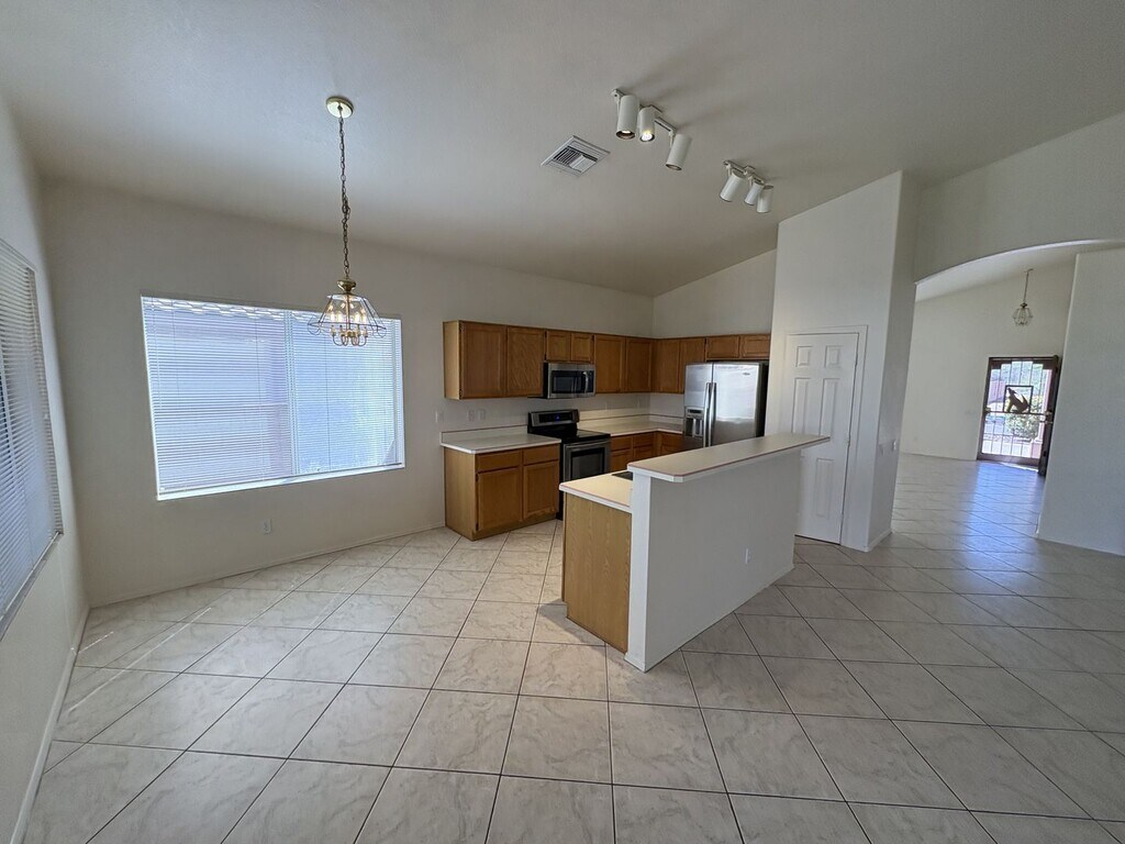 This well-appointed 3-bedroom, 2-bath home in Tucson offers comfortable, functional living with a north/south orientation that promotes natural flow. The layout includes a combined living/dining room and a family room off the kitchen, plus a breakfast nook and breakfast bar for casual meals. New HVAC system for lower energy bills and ceiling fans throughout help maintain airflow, and the large, covered patio extends living space outdoors while the artificial turf rear yard provides low-maintenance greenery. Located in a convenient eastside location, the property blends practical indoor features with easy outdoor enjoyment.