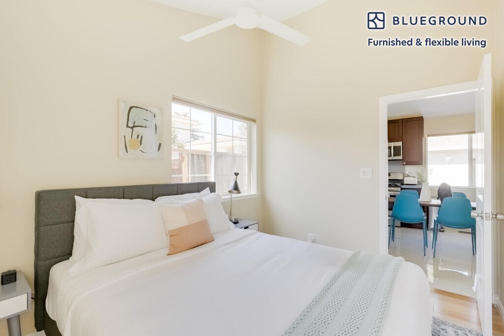 Show up and start living from day one in Cupertino with this sophisticated two bedroom Blueground house. You’ll love coming home to this thoughtfully furnished, beautifully designed, and fully equipped Rancho Rinconada home. (ID #SFO1570) The advertised rate of $3,110/month is the lowest available price, based on a 1 month(s) and 29 day(s) stay with a move-in date of February 21, 2026. If you’re looking for a 1-year stay, the rate is $3,740/month. Rates vary depending on the duration of stay, season, and other parameters. For exact pricing and additional pricing components, please visit our website and enter your desired move-in and move-out dates. The rate is applicable when billed upfront; it can be higher if billed in multiple payments. Brokers are welcome to reach out. Were you looking for an unfurnished lease? Try Blueground instead and upgrade from unfurnished to furnished living: - Furnished at rates comparable to unfurnished - No setup or furniture costs - save thousands - Move-in ready - save time, just bring your suitcase Designed with you in mind As with any Blueground house, you’ll find a thoughtfully designed space complete with beautiful furniture and a fully equipped kitchen in this two bedroom property. And, thanks to our superior quality mattresses, luxury linens, and towels, you can relax knowing you’ll always feel comfortably at home. When you’re ready for some fun, you can take in the Cupertino vibes or bring the entertainment to you with the premium wireless speaker or smart TV. This house also offers in-house laundry. Sleeping arrangements Queen Bed, 63in/160cm Queen Bed, 63in/160cm Amenities Building amenities unique to this two bedroom house include an on-site: - Dryer - Washing machine - Parking - Pets allowed Arrival and ongoing support The entire house is yours to enjoy! Throughout your stay, you’ll have access to our Client Experience team through the Blueground App. You can schedule additional cleanings, submit maintenance requests, and view our neighborhood recommendations with just a few taps. We’ll share all details upon confirmation of your stay. Other things to note This Blueground house has flexible lease options, allowing you to book it for one month, a year, or more. Pets are welcome, though weight limits and breed restrictions apply and may incur fees. Parking is offered based on availability and is subject to a fee. Please keep in mind that this is a walk up building. We take great pride in ensuring every photo displayed is shot in our own units with our actual furnishings. That said, we regularly refresh our decor and furniture arrangement, which may differ from what’s pictured. [SI]