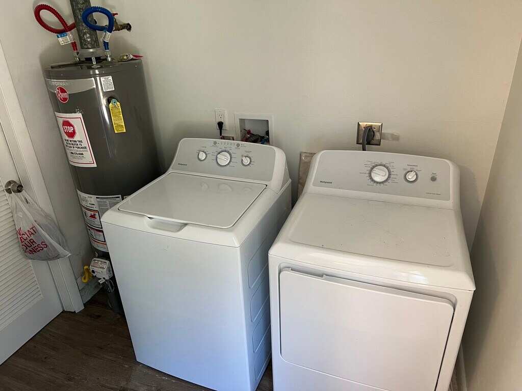 Great location, single family home with fenced back yard, stove, fridge, washer and dryer.