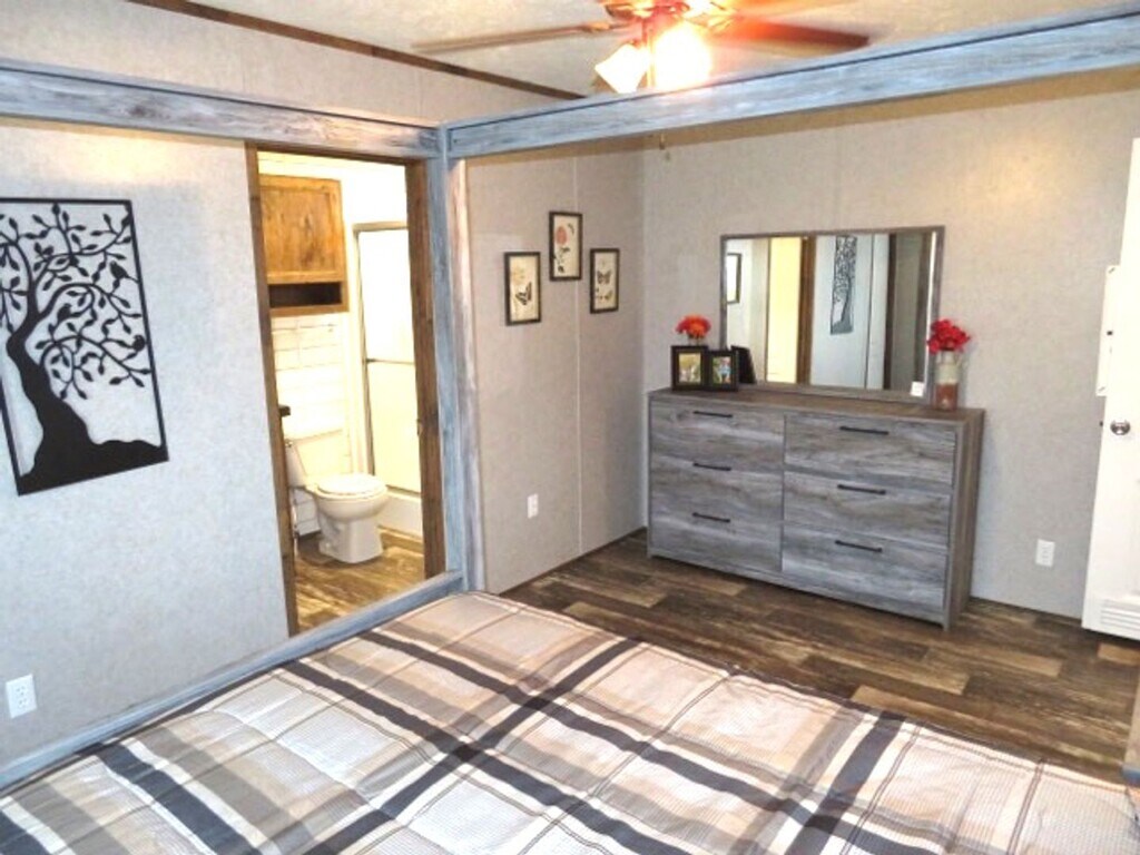 PRICE REDUCTION!! MOVE-IN SPECIAL: $200 OFF 2ND MONTH'S RENT This like-new 2020 Clayton Hunter home has over 1200 square feet and has 3 bedrooms, 3 full baths, and 3 walk-in closets. Yes, each BR has a private bath and its own walk-in closet. All 3 bedrooms are the same size. The home also has roomy 8 ft ceilings with recessed LED lighting and ceiling fans in the LR and all bedrooms. The entire home is wrapped in sturdy OSB siding under the vinyl siding. It also has extra insulation in the walls and ceiling, and low-E double-pane windows for LOW power bills. The heating and air vents are located in the ceiling, so your furniture or rug won't cover your vents. The home is totally electric and has central heat and air, and a digital thermostat you can control from your smartphone from wherever you are. Other features: upgraded 50-gallon water heater so you don’t run out of hot water, steel front door and cottage-type steel rear door, separate laundry room with a pantry wired for a stand-up freezer, open concept kitchen/living area with new black Frigidaire stove with glass tile backsplash, black fridge with ice maker and dishwasher. The kitchen sink has a goose-neck sprayer. Fully lined cabinetry throughout and transom windows, which add extra light. Each bathroom features a sit-down 60" one-piece fiberglass shower with glass doors, china sinks, and towel and tissue holders built in. Built-in entertainment center for your big screen TV, linoleum flooring throughout for durability and easy clean-ups. Large covered deck for entertaining with full-width steps for easy entry and exit. Pet Friendly with a $350 pet fee and $50 monthly pet rent (restrictions apply) University Estates is the nicest mobile home park in Calhoun County. When you live here, you are less than a mile from Jax State, Walmart, Jacksonville City Schools, Legacy Village, and the Ladiga Trail. We invite you to drive through our community and make an appointment to see our homes.
