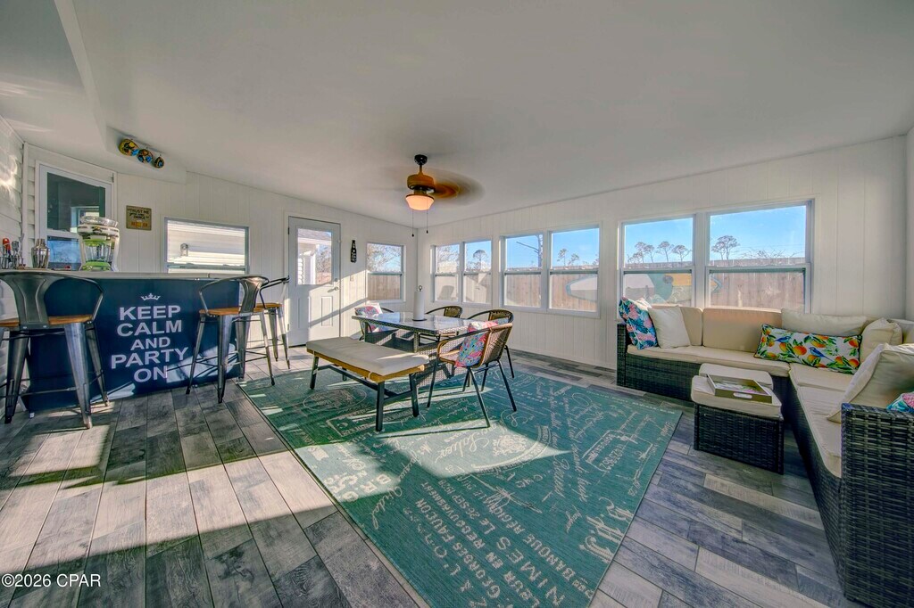 This spacious 3 bedroom, 2 bathroom, plus sunroom home is your perfect home at the beach. Located at the end of a private road, with a wide driveway and fenced yard, this is your home for privacy, but still just minutes from the sugar sands and shops for convenience.This home was fully remodeled in 2019, with a beautifully updated kitchen and modern primary bathroom. This long-term rental is furnished and equipped so you can move in right away!
