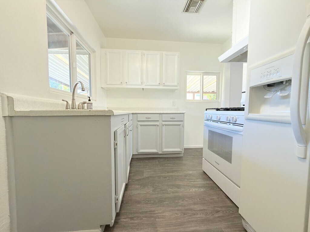 Welcome to 1007 Defoe Street, nestled on a charming closed street in the heart of San Fernando! This delightful two-bedroom, one-bath home blends modern updates with timeless charm. Step inside to discover brand-new wooden floors and a perfectly designed layout that maximizes space and comfort. The home comes fully equipped with essential appliances, including a washer and dryer, a gas stove, and a refrigerator. Plus, enjoy the peace of mind with a brand-new water heater and a newer roof. For added security and convenience, the property features a gated entrance and covered parking, along with a detached garage and a shed for extra storage. The expansive backyard is a gardener's dream, perfect for planting a lush garden or growing your own vegetables.