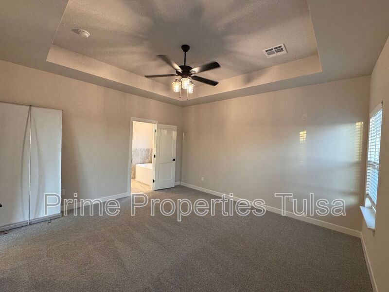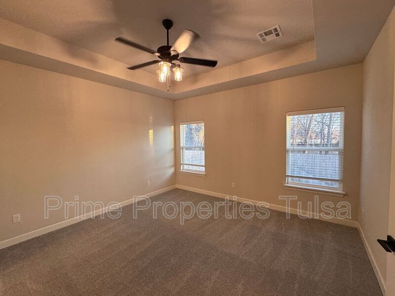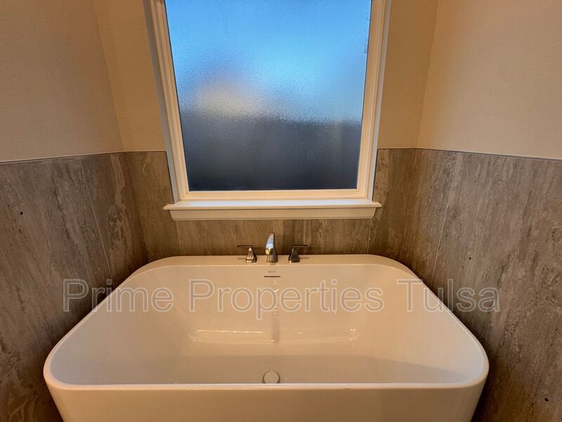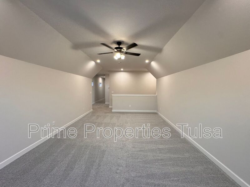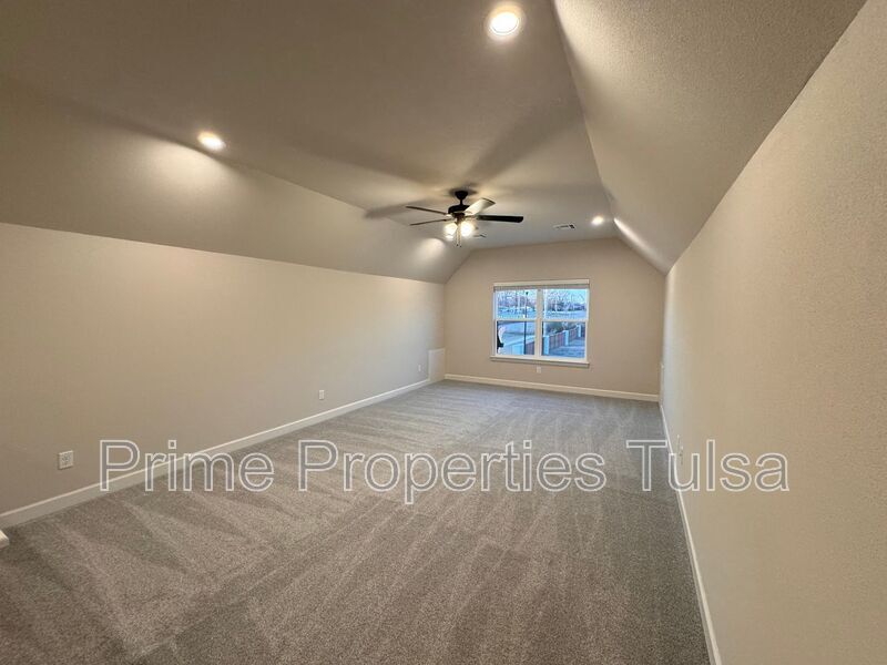 Stylish new construction community with an excellent floor plans! This one is 4 bedrooms - 2 down and 2 up with huge gameroom or office up and 3 full bathrooms. All of the public areas of the main level are floored with pre-finished wood planking. All ceilings are 9' making the rooms feel more open and friendly, wonderful Great Room with gas fireplace off the beautiful Kitchen with built-in stainless steel appliances, quartz counters and pendant lights. Master Suite with tray ceiling and a private bath with walk-in shower and built-in shelves. Separate soaker tub with large occluded window for natural light and privacy. Large walk-in closet with plenty of storage space. 2nd level has the large game room with a vaulted ceiling and 2 large bedrooms split by a wonderful Pullman bath. Tankless water heater. Blinds and a sprinkler system are included! Broken Arrow Schools. Please call Bob at to schedule a showing. Tenant responsible for refrigerator, washer and dryer. Amenities: Pets are case by case