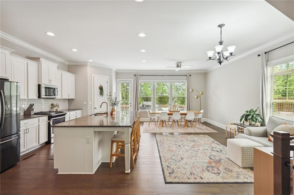 Welcome to Edgemont on Main. A charming tree lined street of townhomes. Located centrally in Alpharetta with easy access to shopping,entertainment and parks. This end unit townhome was the original model home and shows beautifully. Inviting rocking chair front porch to watch the sunsets right off the main entry way and foyer. Large family room with fireplace with views to the kitchen. Kitchen has an oversized island,ss appliances,walk in pantry. Ample room for large dining table and a keeping room. A bonus is this particular townhomes is elevator ready with the three large closets on all three floors!! Upstairs is the primary suite with large bathroom and walk in closet. Two secondary bedrooms share a bathroom. Large laundry room located upstairs as well. Pull down attic stairs has tons of storage space in the attic. Basement is finished with a large entertainment room,full bath,drop zone with cubbies and a closet. Basement could easily be converted into the 4th bedroom! This townhome has it all! Available after March 18,2026. Current tenant will move out on3/17 or before. MLS ID 7714383