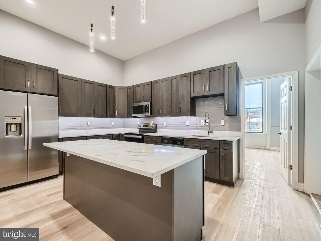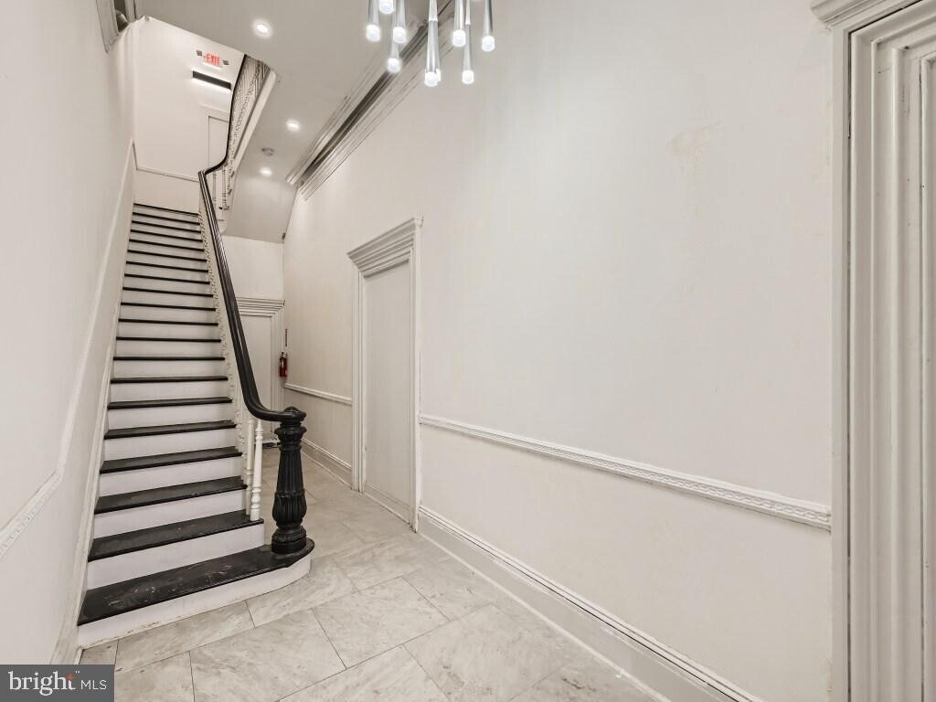 Newly renovated with gorgeous contemporary fixtures and finishes in handsome, secure historic Mt. Vernon rowhome featuring a carved rotunda skylight above an elegantly curving staircase. Excellent Mid-Town location, just a few blocks from Penn Station, close to MICA, Peabody Conservatory, UB, Walters Art Gallery and the Washington Monument. A multitude of dining, shopping and nightlife options in the immediate area. Super high ceilings with recessed lighting add to the grand feel. Individually controlled central heat and A/C. In-unit laundry. Parking available in lot directly across the street.
