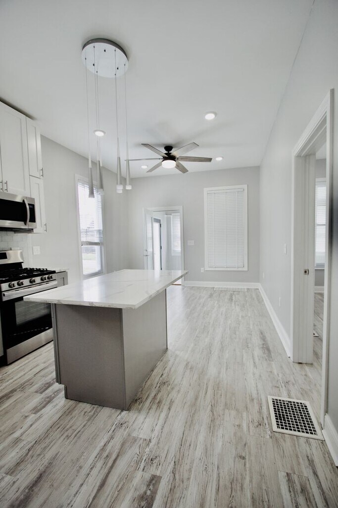 Welcome to this modern, fully rehabbed 2 bedroom home with a garage located in Bloomington, IL. This stunning property features quartz countertops, stainless steel appliances, a microwave, dishwasher, and washer/dryer. With 2 bathrooms, a full basement, and a large walk-in closet, this home offers ample space for comfortable living. Situated on a corner lot near downtown Bloomington and Illinois Wesleyan University, this home is perfect for those looking for convenience and style. Don't miss out on the opportunity to make this beautiful house your new home.