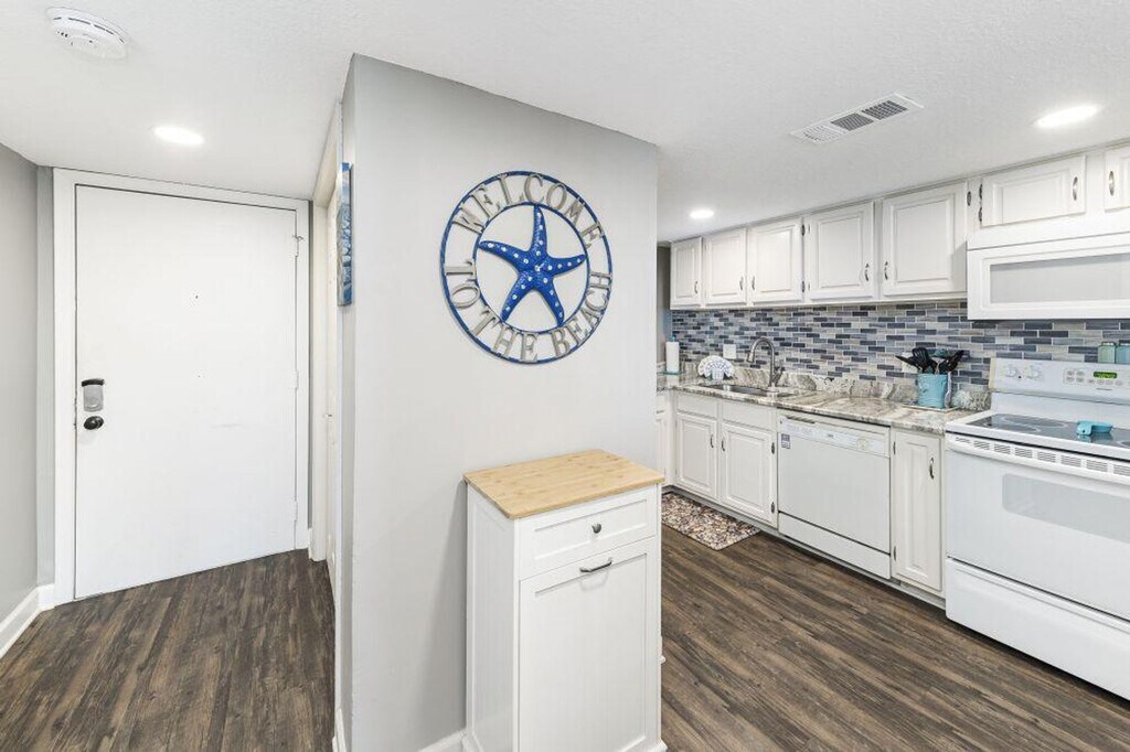 Escape to this beachfront retreat in Gulf Shores with this stunning 2-bedroom, 2-bathroom condo that comfortably accommodates up to 6 guests. Enjoy panoramic views through floor-to-ceiling windows and an open-concept design that ensures a flow between the living, dining, and kitchen areas, perfect for entertaining or relaxing with family and friends. Prepare delicious meals with ease in the modern kitchen, complete with all the appliances and utensils you need. Two well-appointed bedrooms are designed with comfort in mind, featuring cozy beds and ample storage. The condo offers a sparkling outdoor pool and a BBQ area for a fun and delicious outdoor dining experience. Parking passes are available for a maximum of 2 cars. This beachfront condo offers the ideal combination of comfort and convenience, making it the perfect choice for your next Gulf Shores getaway. Soft white sands and warm Gulf waves are steps away. Fresh food from the Sassy Bass Grill is nearby, and Gulf Shores' shopping and dining are a 15-mile drive away. Nine miles westward are Fort Morgan's beaches and boardwalks, and you can access Dauphin Island via the Mobile Bay Ferry. The condo is a smoke-free facility and does not permit pets, except for service animals. Any violation of the smoking policy will incur a $250 fine plus cleaning costs necessary to remove smoke odors. Quiet hours are observed from 10 pm to 8 am, with violators charged a $200 fine. Violation of the pet policy may result in a $500 fine plus cleaning expenses. No parties or events are allowed, with violators charged a $500 fine. For March 1st to May 1st, the minimum age requirement for check-in is 25 years old. You must be at least 22 years old to rent this property. A State Identification Card or Driver's License copy will be requested upon booking. Some properties have cameras installed outside for safety and protection, but surveillance cameras are not inside any of the properties. Beach towels are not provided. [SI]
