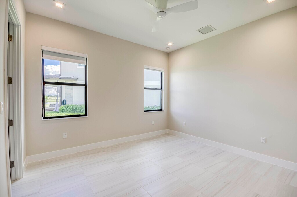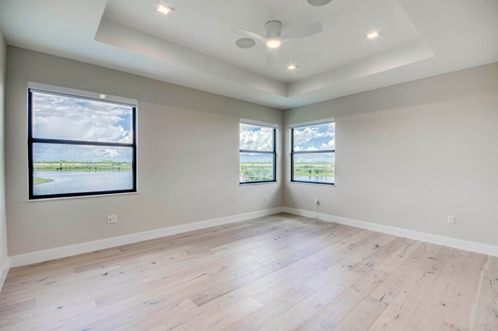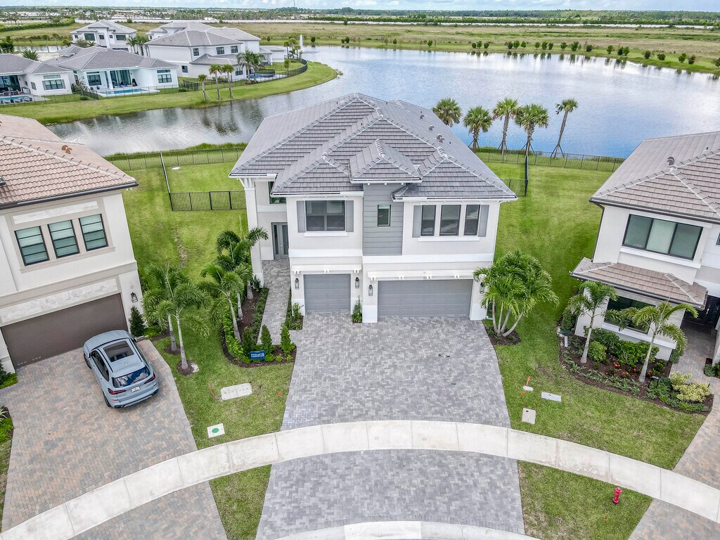 Unmatched premium upgrades! Located on over a quarter acre, this stunning 4BR + office, 5BA lakefront home with 3-car garage on a private cul-de-sac has it all! Features include porcelain tile on the first floor, engineered hardwood upstairs (NO carpet), upgraded cabinetry, quartz countertops, full backsplash, upgraded appliance package with gas cooktop, and oversized island. Enjoy the heated pool & spa, fenced yard, summer kitchen, Sonos surround sound, designer lighting/fans, designer shades, and TVs mounted inside & on the lanai. Avenir offers resort-style amenities: clubhouse, multiple pools, 12 pickleball & 9 tennis courts, fitness center, restaurant, bar/lounge, spa, splash pad, playground, and miles of scenic trails. Minutes to beaches, golf, dining & shopping in Palm Beach Gardens