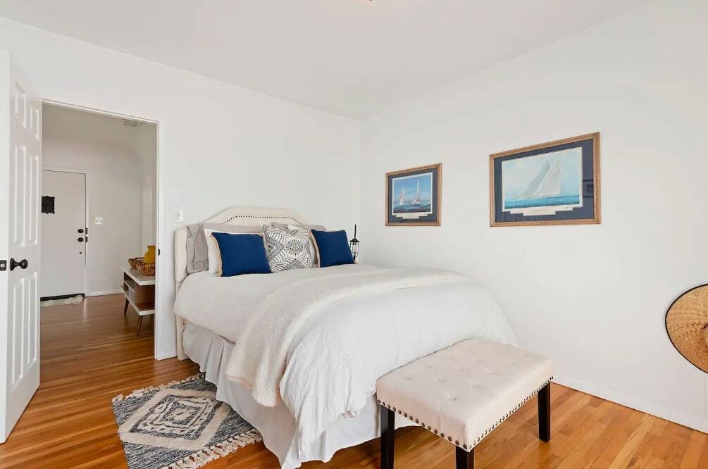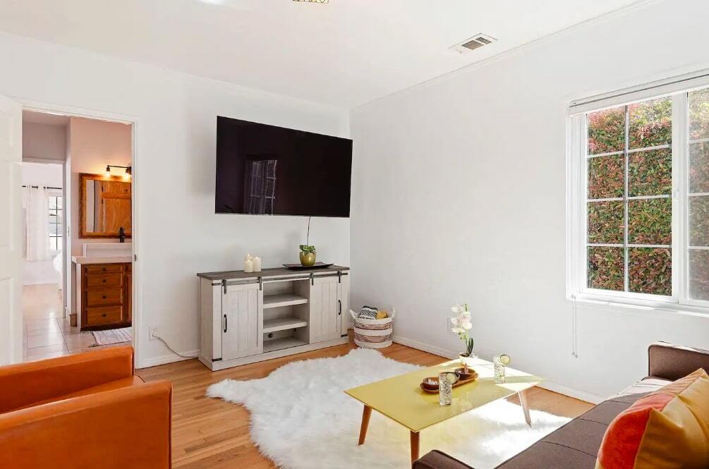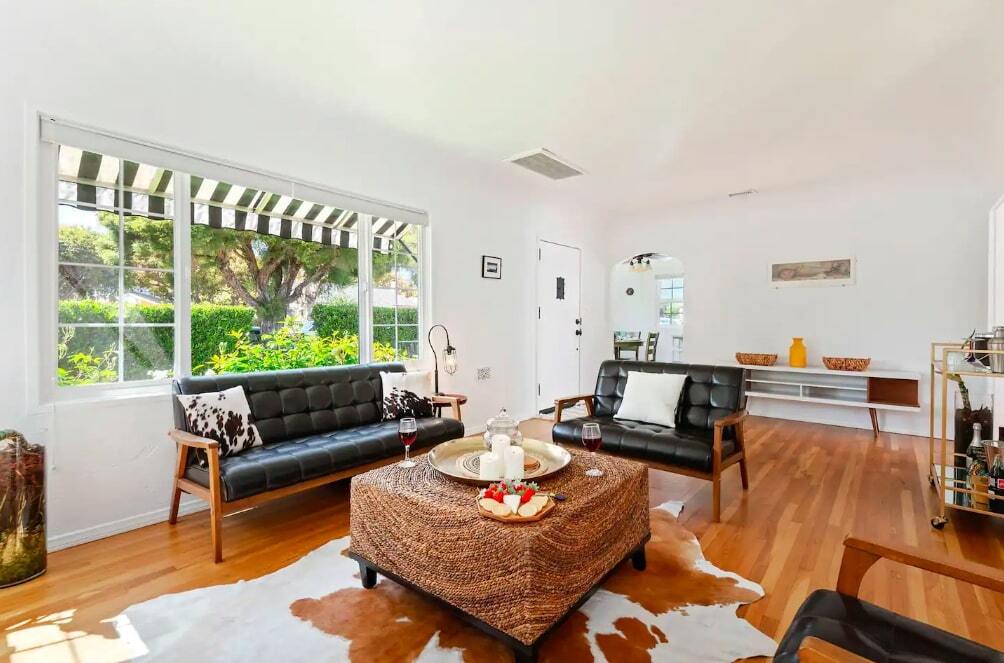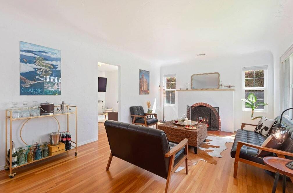 ***Fully Furnished 30+ Night Rental*** Welcome to Bramble Cottage! This is a 2BD, 2BA fully furnished vacation rental in beautiful Santa Barbara. This home is close to the beach and downtown, with shopping, dining, and wine tasting. Book your stay for a memorable vacation experience! The space Bramble Cottage is a fully furnished vacation rental in beautiful Santa Barbara. This peaceful home is a half mile from the beach, 1.5 miles from the heart of downtown Santa Barbara and the famous Funk Zone, with tons of shopping, restaurants, breweries, and delicious wine tasting. This house is designed in Tudor style with hardwood floors and stucco walls that radiate elegance and comfort. In addition, this rental features a well-appointed kitchen with all the necessary appliances to create delicious meals. This sweet rental has tons of natural light and a small dining area for four, perfect for family meals and gatherings. The living room has a cozy fireplace that creates a warm and inviting atmosphere, perfect for relaxing after a long day exploring the nearby Santa Barbara attractions. Next to the living room is a separate TV room with a comfortable couch that folds out to sleep one person and has a huge flat-screen TV for your enjoyment. You can walk through the TV room to the primary bedroom and bath. The primary bedroom has a comfortable king-sized bed, end tables, a flat-screen TV, and an ensuite bathroom with a walk-in shower. The bedroom also features a large sliding barn door closet with ample storage space. The second bedroom has a cozy queen-sized bed, an ensuite bathroom with a shower-tub combo, and a closet. Both bedrooms have sliding glass doors that lead out to the patio area. The patio area is ideal for unwinding, with many seating options to enjoy the fresh air and California sunshine. The patio also features string lights, a porch swing, a large couch, and a BBQ grill, making it the perfect place for entertaining and enjoying the outdoors. In addition, there is off-street parking for one car in the driveway, and a separate laundry area makes washing and drying clothes convenient and hassle-free. Please be aware that this property has a long-term tenant in the studio apartment at the back of the house. The main house is #1, and the studio apartment is #2. The laundry is outside Unit A's kitchen area and is shared with the tenant in Unit B. The door to the laundry room is where unit A begins and where the electronic lock is. This common area is also where the refrigerator for unit A is located. There are distinct lounge areas, plenty of privacy, and a separation between the home and the studio. However, please know that some areas are not entirely private. Book your stay at Bramble Cottage today, and enjoy a comfortable, relaxing vacation experience you won't forget! ***Prices and availability are subject to change based on the time of year. Please contact us for a personalized rental quote.*** ***Utilities are inclusive up to $600. Guests are liable for any utility costs exceeding this amount.*** Special Features: Walk to the Beach Streaming TV WiFi Smart TVs New furniture Quiet location Patios and String Lights BBQ Nearby Attractions: East Beach Harbor and Warf The Funk Zone Santa Barbara Zoo Historical Santa Barbara Mission Botanical Gardens Downtown Santa Barbara The Granada Theatre Wine and Tap Rooms