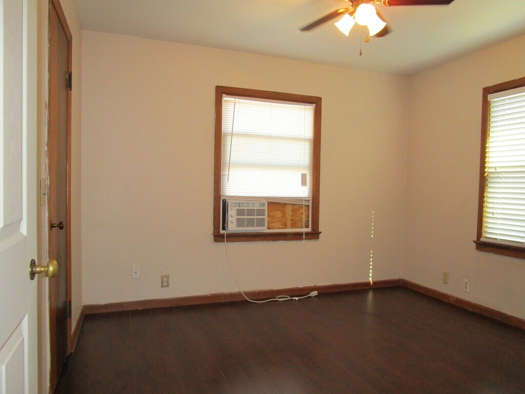 This one bed one bath duplex is literally directly across the street from the SWOSU campus. It has been updated with wood floors and zoned baseboard electric heaters. 2 window units: one in the living room and one in the bedroom. The kitchen includes a refrigerator and stove and overlooks a large yard which is a common area for neighboring tenants. The bathroom has a full tub/shower combination. This is one of the few one bedroom apartments we manage that has it's own washer/dryer hook-up. All tenants have designated permitted parking. Tenants pay their own utilities Electric:PSO; Gas: Centerpoint (only hot water) and water with City of Weatherford. All yard maintenance is provided by the owner.