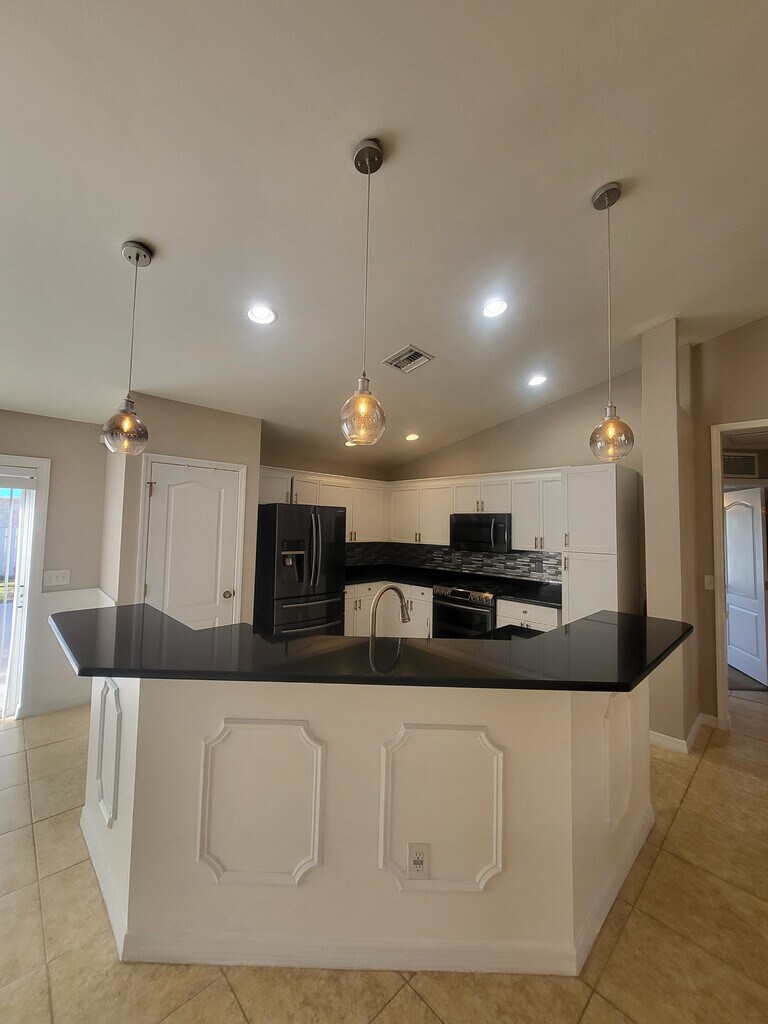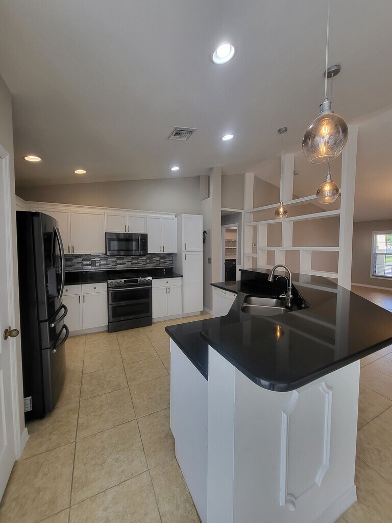 Gorgeous three bedroom, two bath with den! Plenty of upgrades including custom chandeliers, modern wall panels, granite counters, GAS appliances! Large fenced in back yard and back patio, plenty of space for family dinners! Tile in living areas, carpet in bedrooms. Large screened in front porch. Quiet NW Cape Coral neighborhood. This home is a must see! Utilities and lawncare not included. Gas IS included. LG Washer, dryer, and garage fridge included but not maintained. Gorgeous three bedroom, two bath with den! Plenty of upgrades including custom chandeliers, modern wall panels, granite counters, GAS appliances! Large fenced in back yard and back patio, plenty of space for family dinners! Tile in living areas, carpet in bedrooms. Large screened in front porch. Quiet NW Cape Coral neighborhood. This home is a must see! Utilities and lawncare not included. Gas IS included. LG Washer, dryer, and garage fridge included but not maintained.