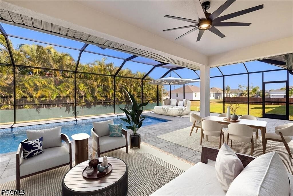Brand-New Construction Pool Home in NW Cape Coral – Luxury,Space & Upgrades! Move right into this stunning new construction 4-bedroom,2-bath pool home,located in one of NW Cape Coral’s most desirable neighborhoods surrounded by Gulf access homes. Designed with both style and functionality in mind,this home features vaulted ceilings in the main living areas and tall ceilings throughout,creating a bright,open,and spacious feel. The gourmet kitchen is equipped with upgraded stainless-steel appliances,well above typical builder-grade,and designed for both everyday living and entertaining. You will love the two-tone cabinetry that adds a modern,high-end touch. Both bathrooms feature elegant tile work and fully enclosed glass showers,adding a touch of luxury to your daily routine. The master bath has dual sinks that makes getting ready for the day easier. The huge master closet has lots of adjustable shelving to store all of your clothing and treasures. Step outside to your private backyard oasis featuring a 12x24 heated saltwater pool with sun shelf/splash pad,enclosed within a screened pool cage. The outdoor space also includes a pavered pool deck and over 750 sq ft of living area,perfect for relaxing,entertaining,and enjoying the Florida lifestyle in total privacy. Additional exterior features include a pavered driveway and beautifully manicured landscaping,enhancing the home’s curb appeal. This home is loaded with premium upgrades,including: -Impact-resistant windows and doors (no shutters needed) -Whole-house reverse osmosis water system -Fully automated sprinkler system -Full security system with 4 cameras (viewable from your smartphone) -Spacious 3-car garage with epoxy-coated floors for vehicles and storage ? This home truly has it all—luxury finishes,modern upgrades,and resort-style living. Schedule your private showing today! * $2,750 a month * First ($2,750) & Security ($2,750) * $65 per Application per Adult. All Adults MUST Apply! * Pets allowed with pet rent * 2.5 times monthly rent in Income ($6,875) * 1 month of Pay Stubs