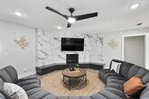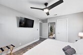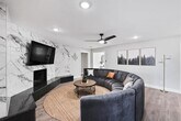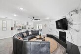 Stunning completely renovated, fully furnished home in Plano with a sparkling pool. Relax on the covered patio, surrounded by a beautifully landscaped yard, and soak up the sunshine. Inside, unwind in the spacious living room, complete with comfortable couches, stylish designer rug, and elegant coffee tables. Enjoy your favorite shows on the flat-screen TV, stay connected with high-speed Wi-Fi, and appreciate the tasteful décor and furnishings that exude warmth and sophistication. The heart of the home is the expansive open living areas seamlessly connecting to the fully equipped chef's kitchen, complete with sleek quartz countertops, beautiful backsplash tile, and high-end stainless steel appliances. The separate dining area is facing the sparkling pool, perfect for special occasions. Each of the five bedrooms is lavishly appointed with hotel-line furniture, accessories, and linens, ensuring a luxurious retreat for all. The primary suite is a serene retreat, featuring a quartz vanity and a spacious walk-in shower with stunning custom designer tile work. And, as the icing on the cake, the 2-car garage features a bonus game room – perfect for family game nights, entertaining friends, or simply unwinding. Ample parking options also include the driveway or convenient street parking right in front of the house. Prime location just minutes from shopping & restaurants and right on George Bush & 75, making this incredible home the perfect blend of luxury, comfort, and convenience.