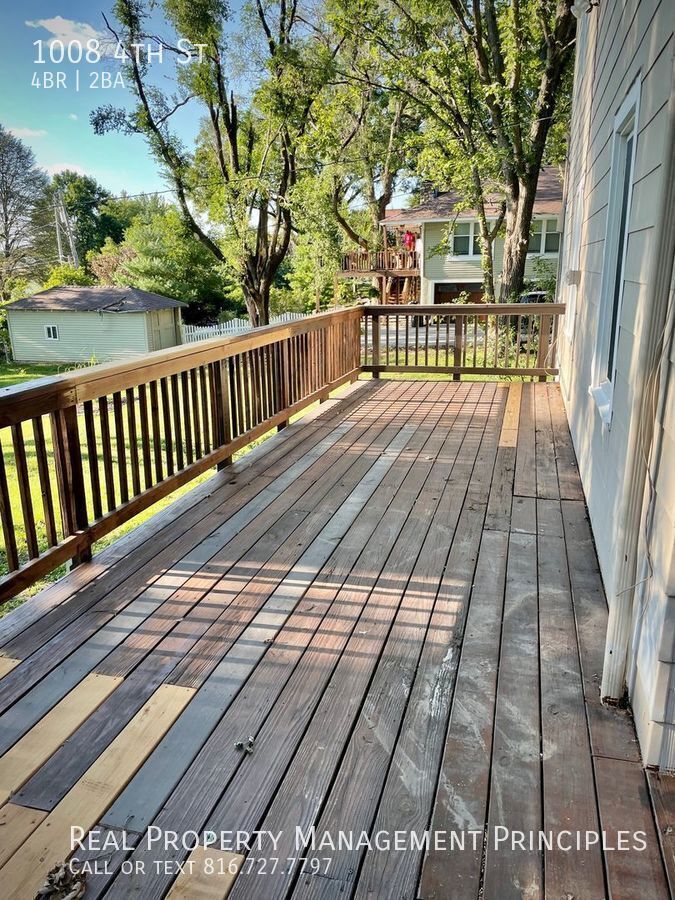 This completely renovated and restored 4 bedroom, 1.5 bathroom entertainer’s paradise is loaded with beauty and charm. Is sits along the high demand strip of 4th Street near downtown Platte City. The house boasts refinished hardwood flooring, new fixtures, completely renovated bathroom and kitchen with brand new appliances as well as a new high efficiency AC and Furnace. From the arched doorways to the built-ins to the walk-in pantry, the home is loaded with personality and extras. The kitchen has new cabinets and plenty of counter space for even the most discerning culinarian. The back yard has an oversized wrap around deck, fire pit and regulation horseshoes and sits next to the water park. It is the perfect home for enjoying the outdoors and entertaining. The house is a few short blocks from the historic downtown Platte City, a block from the baseball fields at Zed Martin Park, and a few short minutes from the Platte County Schools. This amazing property will get scooped up fast, so don’t wait to call or click to set up a showing! None Oversized Deck