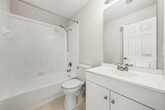Beautifully renovated corner condo in a desirable gated community! This spacious 2-bedroom, 2.5-bathroom residence offers an open and airy floor plan with tile floors downstairs, vaulted ceilings, and abundant natural light. Upstairs, both bedrooms feature private en-suite bathrooms and walk-in closets perfect for comfort and privacy. Enjoy a full-size washer and dryer, Roman tub, and additional storage space. Conveniently located near shopping, dining, top-rated schools, and major highways. Minutes from parks and entertainment options everything you need is right at your doorstep. Move-in ready and easy to show!