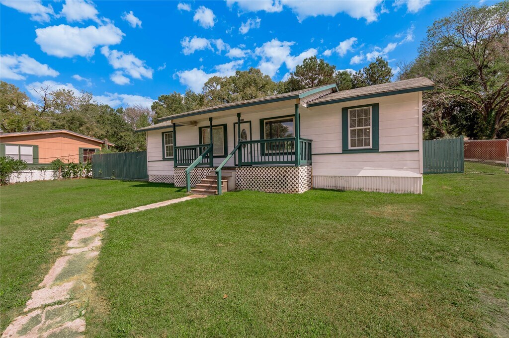 This home features 3 or 4 bedrooms,2 bathrooms,a covered front porch,and a spacious back yard. Enjoy hard surface flooring throughout the home,with the owner currently in the process of installing kitchen appliances. MLS# 76206668