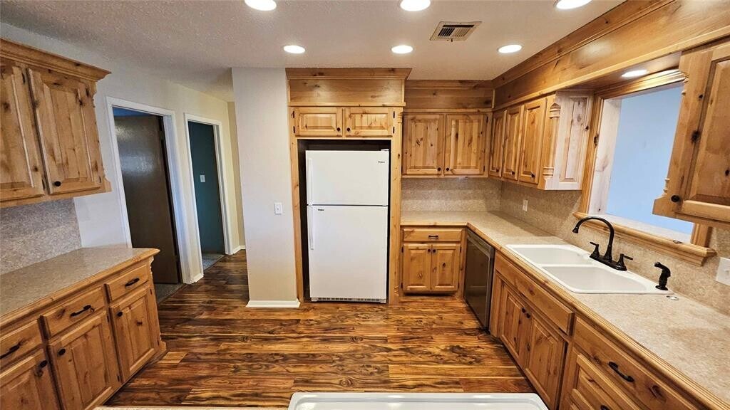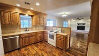Welcome to a thoughtfully cared-for residence featuring rich wood flooring through much of the interior,complemented by carpeted bedrooms and a sunroom. The main living space feels calm and inviting,anchored by a fireplace and custom shelving,while large windows fill both the living area and sunroom with sunshine. The kitchen connects effortlessly to the main living space,creating an ideal layout for everyday living and gatherings. Outside,enjoy a spacious,fully enclosed yard with a gate; great for hosting or unwinding in privacy. An added bonus is the above-ground storm shelter conveniently located in the two-car garage. Schedule your tour today! This one is ready to welcome you home.