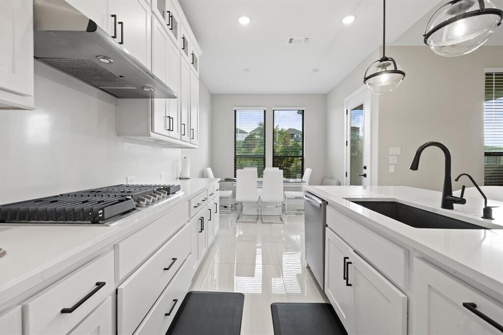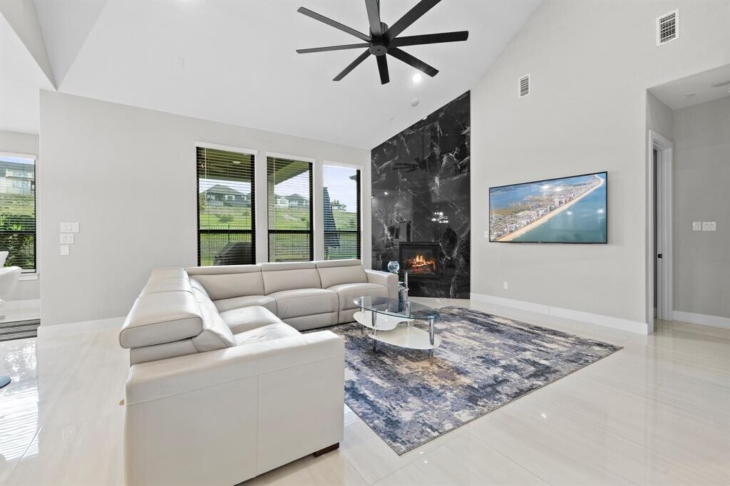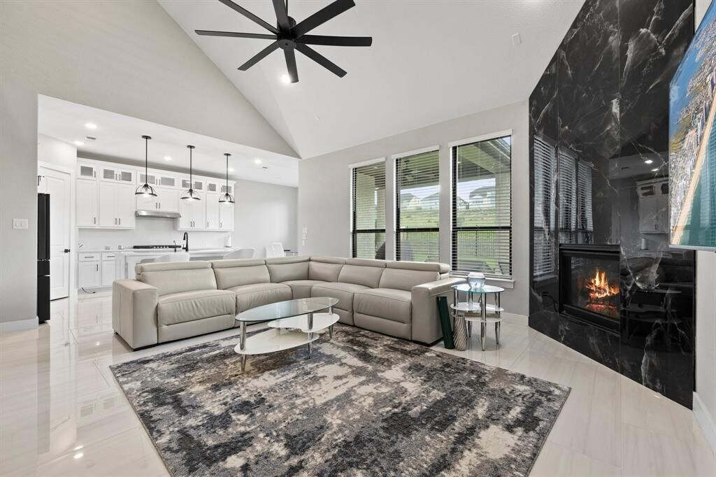 Stunning 2024 built French Provincial-style single-family residence offering 3,727 sq. ft. of thoughtfully designed living space with 5 bedrooms, 4 full bathrooms, and a 3-car tandem garage, located in the highly desirable Leander ISD. This elegant home features a grand foyer with a staircase, French doors, and designer lighting, leading into an open-concept layout with a spacious family room showcasing soaring ceilings, a premium fireplace, and abundant natural light. The gourmet kitchen is equipped with stainless steel appliances, white cabinetry, a large island with sink, breakfast bar seating, and stylish pendant lighting, seamlessly flowing into the dining and breakfast areas—perfect for entertaining. The main-level primary suite offers a luxurious retreat with a spa-inspired bath featuring dual vanities, a freestanding soaking tub, and a marble-finish walk-in shower. Additional highlights include a dedicated study, multiple secondary bedrooms, a game room, and a media/entertainment room, along with open-to-below loft spaces that enhance the home’s airy feel. Enjoy outdoor living in the private fenced backyard with patio and ceiling fan, complemented by a beautiful brick and stone exterior. Zoned to North Elementary, Danielson Middle School, and Glenn High School within Leander ISD, this home combines upscale design, functional living, and an excellent location—ideal for modern family living. MLS ID 8108491