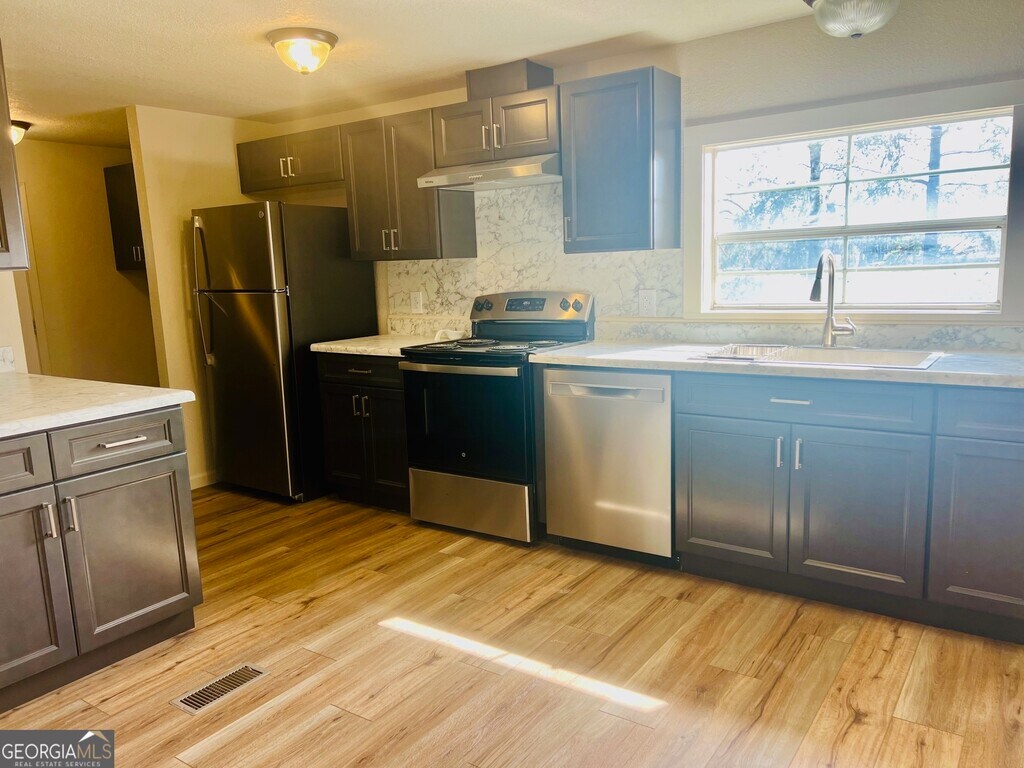 Completely renovated home with fenced in yard. Large living room with beautiful fireplace, updated kitchen with stainless steel appliances. Home features split floor plan. Master bathroom has double vanities with gorgeous tiled shower. This home offers country living at it's best.