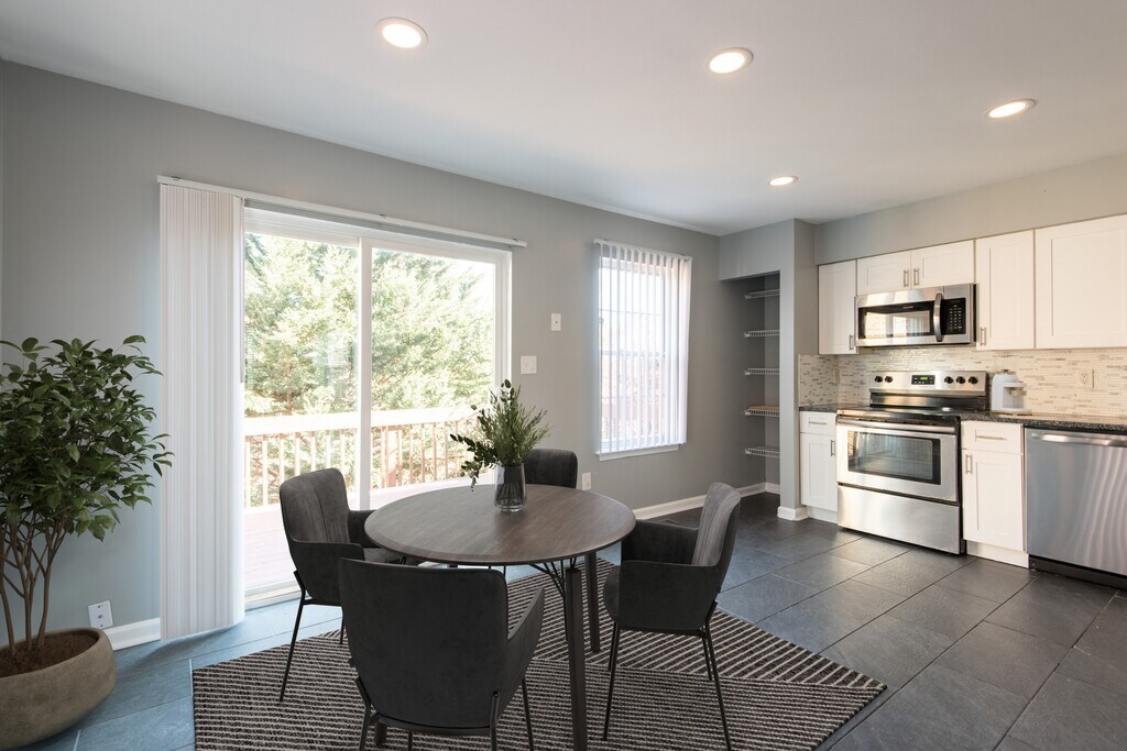 Bathroom - Stall Shower, Bathroom - Tub Shower, Carpet, Combination Kitchen/Dining, Floor Plan-Traditional, Kitchen - Table Space, Pantry, Recessed Lighting, Upgraded Countertops, Wood Floors; No Fireplace; Built-In Microwave, Dishwasher, Dryer - Electric, Dryer - Front Loading, Exhaust Fan, Extra Refrigerator/Freezer, Icemaker, Oven/Range - Electric, Refrigerator, Stainless Steel Appliances, Washer, Washer - Front Loading, Water Heater; Accessibility Features: None; Basement Laundry, Dryer In Unit, Has Laundry, Lower Floor Laundry, Washer In Unit Spacious and renovated 3BR/2BA end of row townhome for rent in the community of Dartmouth Glen in the Belvedere Square area. Rarely available! Includes private off-street parking! Well maintained with a spacious floor plan. Updated eat-in kitchen with stainless steel appliances. Entertain out back on the deck if you choose. Fully finished basement family room with full bath and walkout patio doors to the back yard. Central A/C throughout, freshly painted throughout, private parking out front. HOA includes lawn maintenance. Just a 5 minute walk to Belvedere Square, 5 minute drive to GBMC, St. Joseph's Medical Center & Towson Mall.