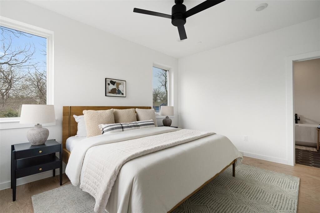 AVAILABLE 7/1 - Modern design meets unbeatable central Austin convenience in this stunning 4-bedroom, 3.5-bath home just moments from Hancock Center. Thoughtfully designed with clean architectural lines and high-end finishes throughout, this light-filled residence offers an open-concept floor plan with soaring ceilings, wide-plank hardwood floors, and expansive windows that flood the space with natural light. The chef’s kitchen is a true showpiece, featuring custom dark cabinetry, sleek quartz countertops, premium stainless steel appliances, gas range, oversized island with seating, and abundant storage. Spacious living and dining areas flow seamlessly to the covered back patio, creating the perfect setup for entertaining or relaxing. The primary suite is a private retreat with oversized windows, spa-inspired bath, and generous closet space. Secondary bedrooms are well-sized, with flexible options for guests, office, or playroom. A bonus loft/study area adds even more versatility for today’s lifestyle. Set on a large, fenced lot with a beautifully landscaped yard and mature trees, this home offers rare outdoor space in one of Austin’s most desirable central neighborhoods. Enjoy walkable access to Hancock Center shopping, dining, parks, and quick connectivity to UT, Downtown, Mueller, and major thoroughfares. A stylish, turnkey home in an unbeatable location. MLS ID 5247740