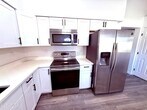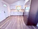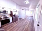 This freshly remodeled 2-bedroom,1-bath home features updated laminate flooring,modern paint throughout,stainless steel appliances,high ceilings,and quartz counter tops,Enjoy the convenience of a full-size laundry room complete with new washer and dryer. The spacious fenced yard offers plenty of room to relax or play. Bedrooms are separated for privacy with shared bathroom in the middle. Pets are welcome with an additional fee.