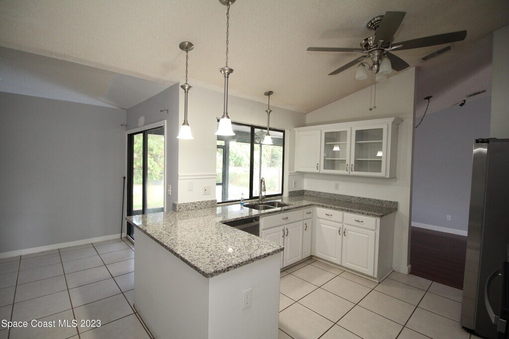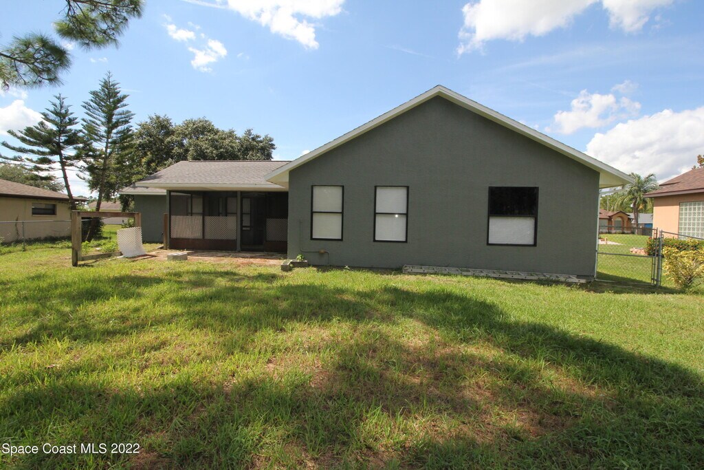 Check out this great home located in North West Palm Bay minutes away from St. Johns Heritage Parkway. The features of this home include three bedrooms,two bathrooms,formal living room,formal dining room and family room. The kitchen includes granite countertops,stainless steel appliances and breakfast bar great for entertaining. The owners suite has a spacious bathroom with shower/tub and walk-in closet. There is also a screen in patio overlooking a fenced in backyard. Make your appointment today! MLS # 1074517