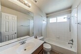 Freshly painted interior, Great price on this 3 bedroom 2.5 bath home, 2 car garage. Laminate flooring in living room, with 20-foot ceilings. Eat in Breakfast in open kitchen. Includes refrigerator, washer, dryer. Nice covered patio and level back yard. The primary bedroom has a large soaking tub, a separate shower, double vanities and walk in closet. Neighborhood has a community pool, park and is close to Devine Lake park. Easy access to HWY 183, close to Capital Metro train. HIghly rated Leander Schools. No dangerous breed of dogs please, pets must be approved by owner. Applicant must provide previous landlord information.