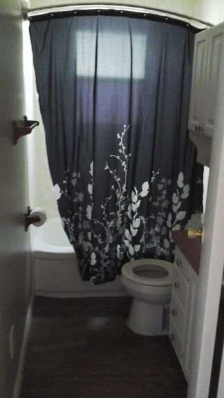 Small 2 bedroom, 1 bath house with central heat and air with vinyl plank flooring.