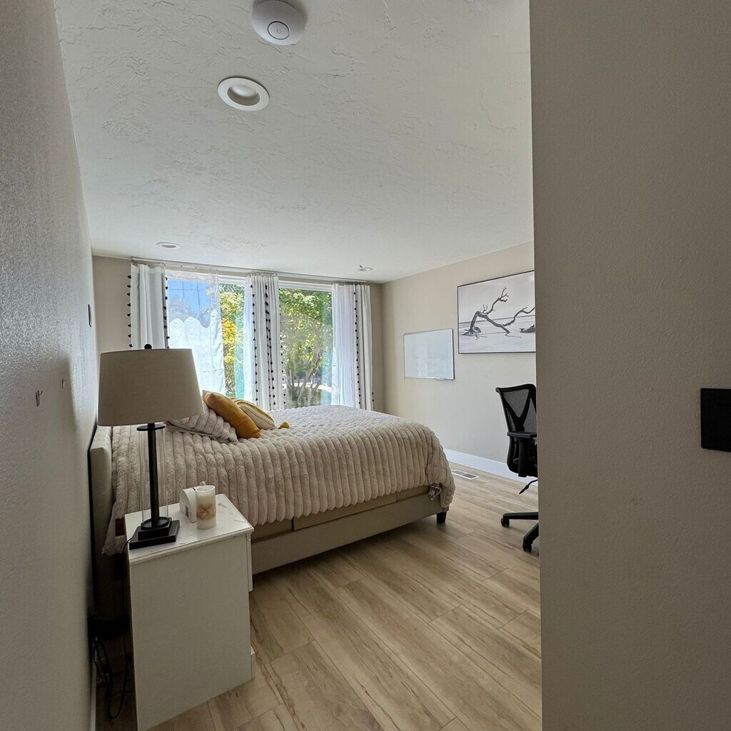Welcome to Casa del Lago, a custom-designed luxury home located at 1009 Jones Ave NW in Albany, Oregon, overlooking the peaceful Thornton Lake. This 3,400 sq ft residence blends striking architectural design with functionality and comfort. The home features three spacious bedrooms, each with its own private bathroom. The master suite is a true sanctuary with dual walk-in closets, a spa-style bathroom, and a private terrace. Upstairs, a second large bedroom offers its own walk-in closet, en-suite bathroom, and a south-facing balcony. The main level includes three additional bedrooms—two with en-suite bathrooms and one with a bathroom just outside the door. One room is set up as a full office, complete with sliding barn doors, ideal for remote work or creative space. The heart of the home is a large, open-concept kitchen with an oversized island, walk-in pantry, and seamless flow into the living and dining areas. A full-service laundry room offers built-in cabinetry, washer/dryer hookups, and a laundry sink. The expansive back deck provides unobstructed views of the lake—perfect for entertaining or quiet evenings at home.