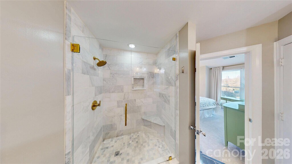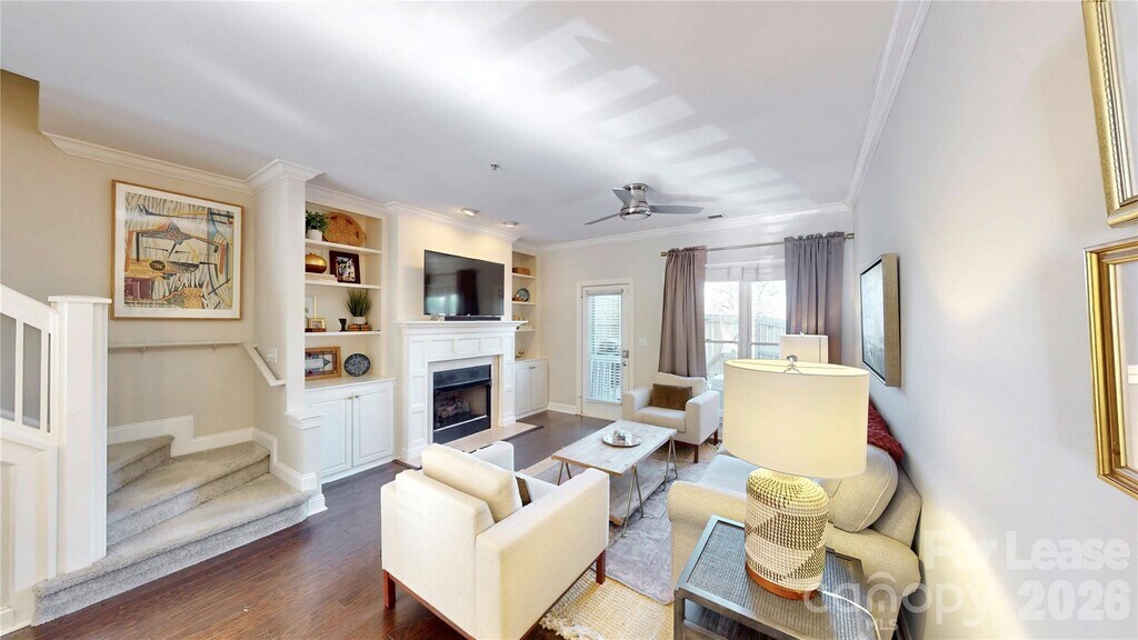 Gorgeous,light-filled Dilworth townhome available for a quick move-in and walkable to your favorite neighborhood hot spots. Be wowed by the spacious open floor plan featuring beautiful finishes,wood flooring throughout the main level,9-foot ceilings,and a gas fireplace flanked by custom built-ins. The living space flows seamlessly to a private outdoor patio—perfect for entertaining or grilling—while the upgraded kitchen offers granite countertops,stainless steel appliances,and a breakfast bar ideal for casual dining. Two bedrooms are located upstairs,including a primary suite with vaulted ceilings and an en-suite bath featuring a double vanity and stunning tiled shower; the second bedroom boasts floor-to-ceiling windows and easy access to a full hall bath. Conveniently located near Uptown,South End,Montford,and Freedom Park,with washer and dryer included,water included,one designated parking space,and ample additional parking available. MLS ID CAR4341399