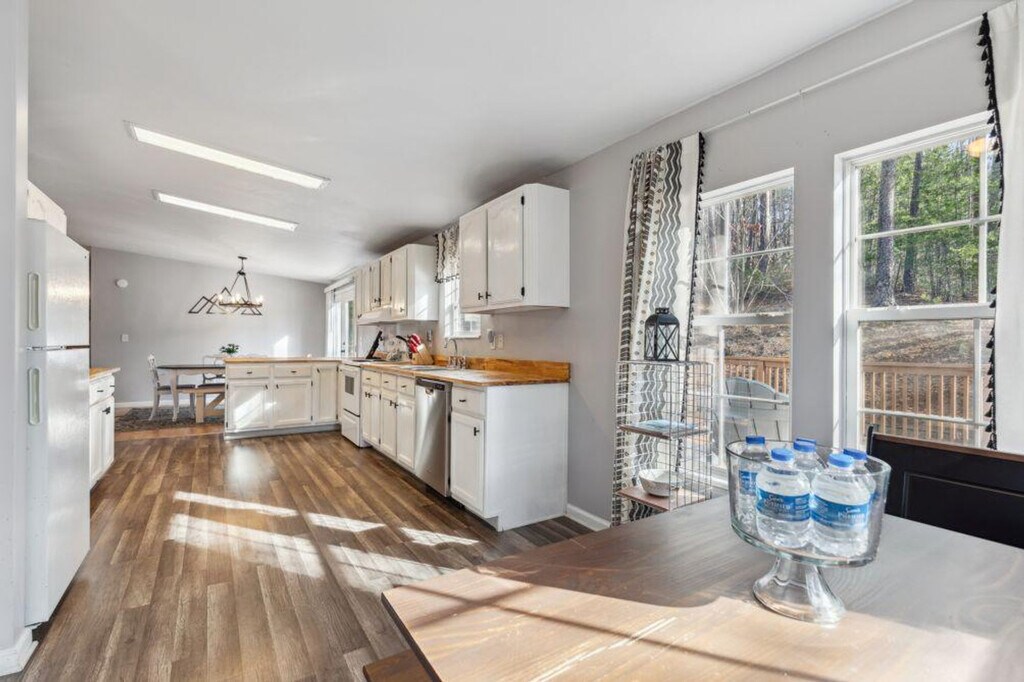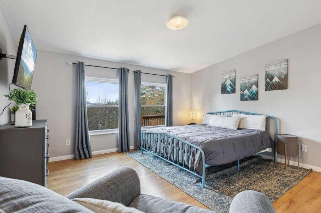 Escape to the serene beauty of the Smoky Mountains and make this charming 3-bedroom house your cozy retreat. Nestled amidst nature's splendor, this single-level abode offers breathtaking mountain and woods views from both the patio and balcony, promising an unforgettable getaway. Sink into plush seating around the warm fireplace and enjoy your favorite shows on a generous 65-inch TV, complete with Netflix for your entertainment pleasure. The fully equipped kitchen is a haven for culinary enthusiasts. Whip up delicious meals with ease using modern appliances and ample counter space. The dining area is perfect for family meals or friendly gatherings. Free parking is available for a maximum of 2 cars. The pet policy allows for 1 dog up to 20 pounds with a pet fee of $100 plus tax. This Sevierville haven is perfectly situated to explore the wonders of the Great Smoky Mountains. Hiking trails, scenic drives, and wildlife encounters await you. For a dose of adventure, head to Dollywood or indulge in local cuisine and shopping in downtown Sevierville. Nearby attractions include Dolly Parton's Stampede, Three Bears General Store, Hillbilly Golf, Ripley's Believe It Or Not!, Ole Smoky Moonshine, Country Tonite Theatre, Parrot Mountain And Gardens, Ober Gatlinburg, and Cataloochee Ski Area. Some of the mountain roads can be steep and winding, so drive cautiously, especially if it’s your first time in the area. Check-in time is no earlier than 4:00 P.M. and check-out time is no later than 10:00 A.M. Late check-outs will result in additional charges. This is a non-smoking cabin and any violation of the smoking policy will incur a $400 fine plus the cleaning costs necessary to remove smoke odors. Parties aren't allowed. At least one guest must be 21 years or older and proof of age will be required at check-in. Guest acknowledges and understands that they are financially responsible for any and all property damage that may occur during the rental period due to negligence or abuse. For same-day late check-ins, host approval is required before booking. [SI]