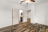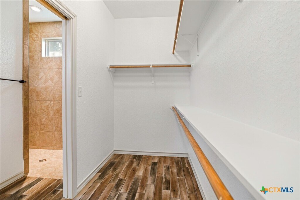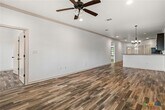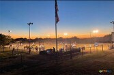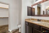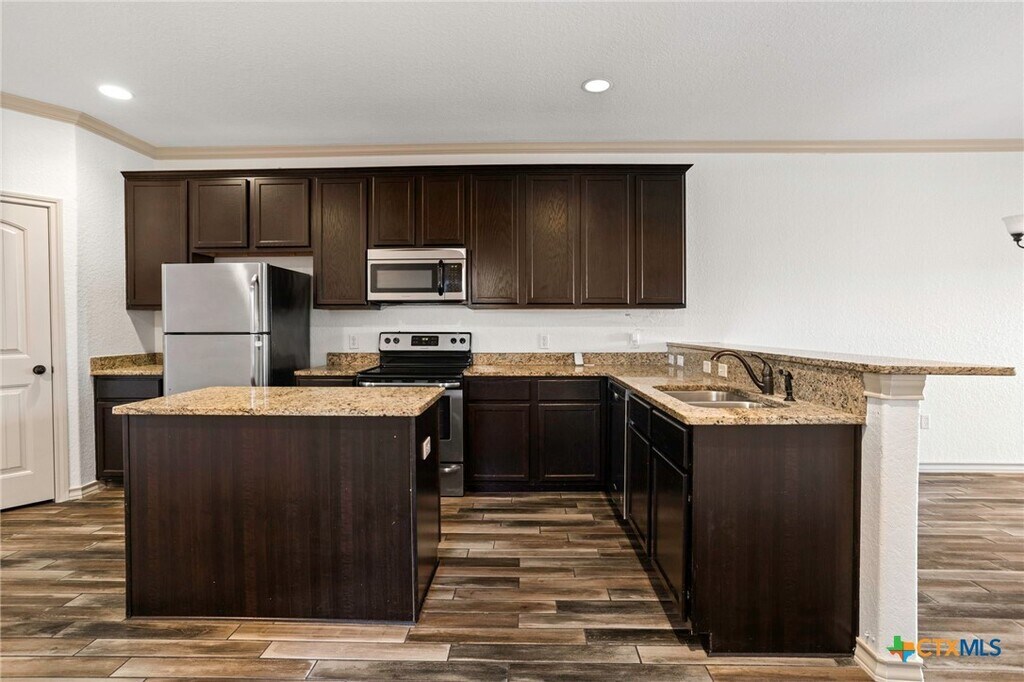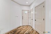 True Texas Nights! Just reduced and one-of-a-kind — this single-story duplex backs up to an active private rodeo arena and horse facility! Enjoy the view without losing your peace and quiet. Open floor plan with granite island kitchen,crown molding,and no carpet — only easy-care wood-look tile throughout. The primary suite features a spa-style dual-head shower,double vanities,and a spacious closet. Relax on the covered patio under the arena lights and Hill Country skies. Fully fenced backyard,stainless appliances (fridge included),sprinkler system,metal roof,and front yard care included. Pet friendly and move-in ready!